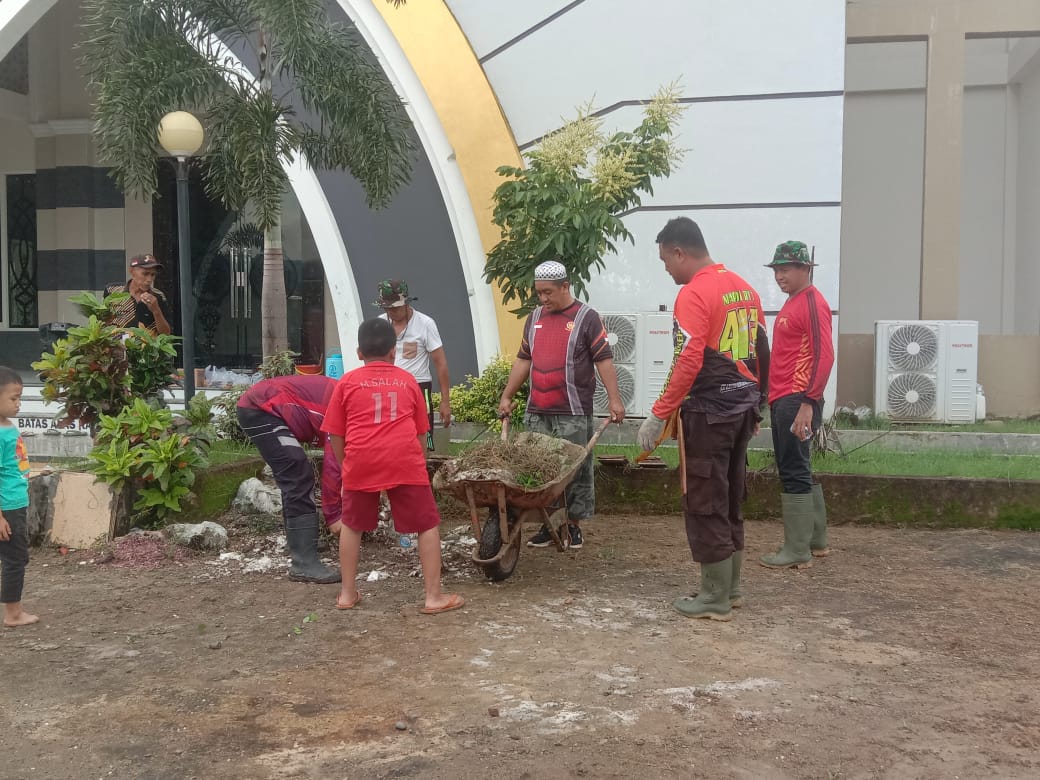 Kita terus berupaya menjalin sinergitas untuk mempererat persatuan dan kesatuan dan menjaga kondusifitas lingkungan mesjid salah satunya dengan melaksanakan kegiatan gotong royong ini.”imbuhnya.