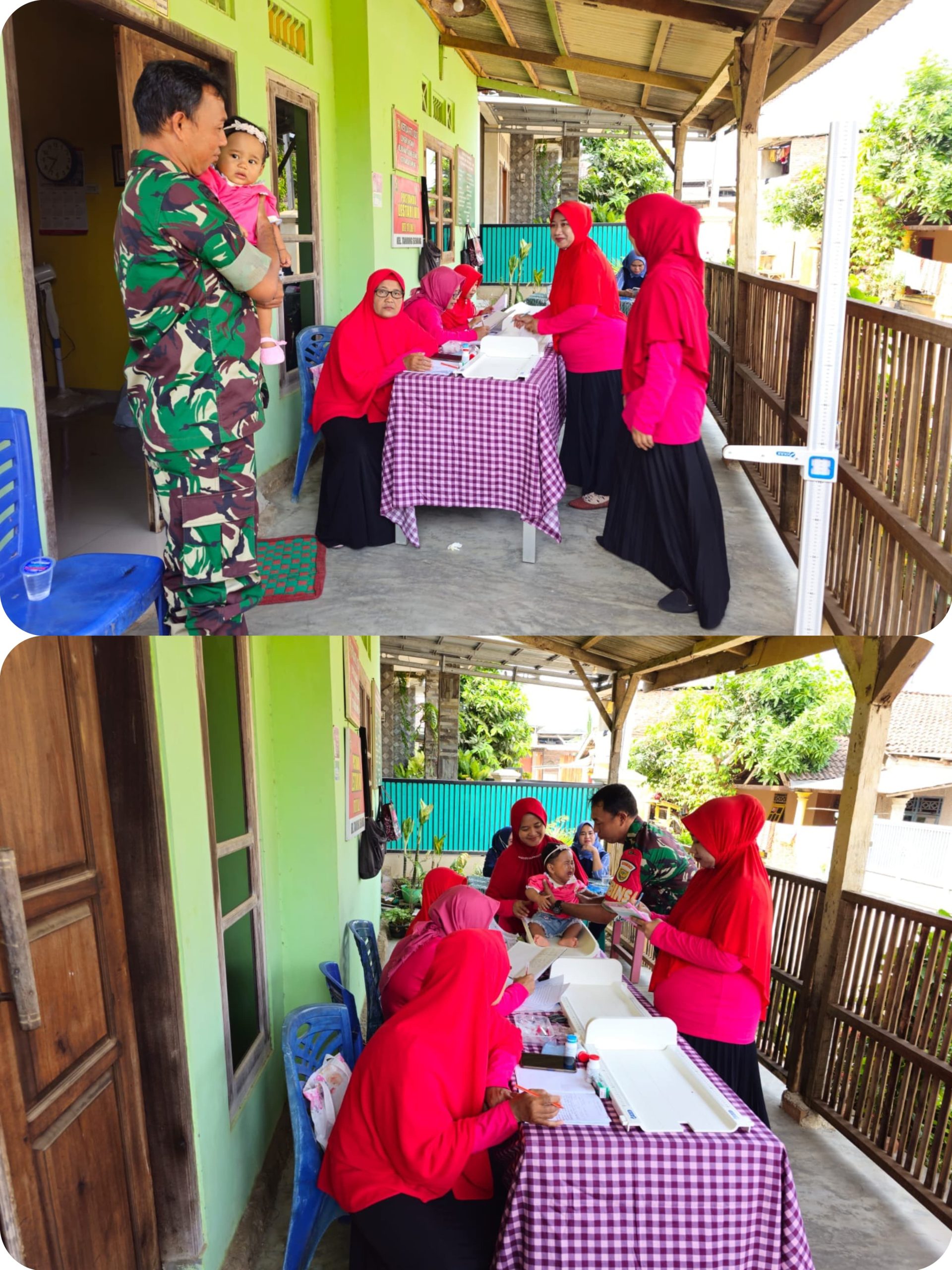 Babinsa Koramil 421-01/Kedondong Sertu Latip Indra terlihat aktif mendampingi warga pada kegiatan Posyandu, Desa Way Harong, Kecamatan Way Lima Kabupaten Pesawaran. Rabu (29/1/2025)