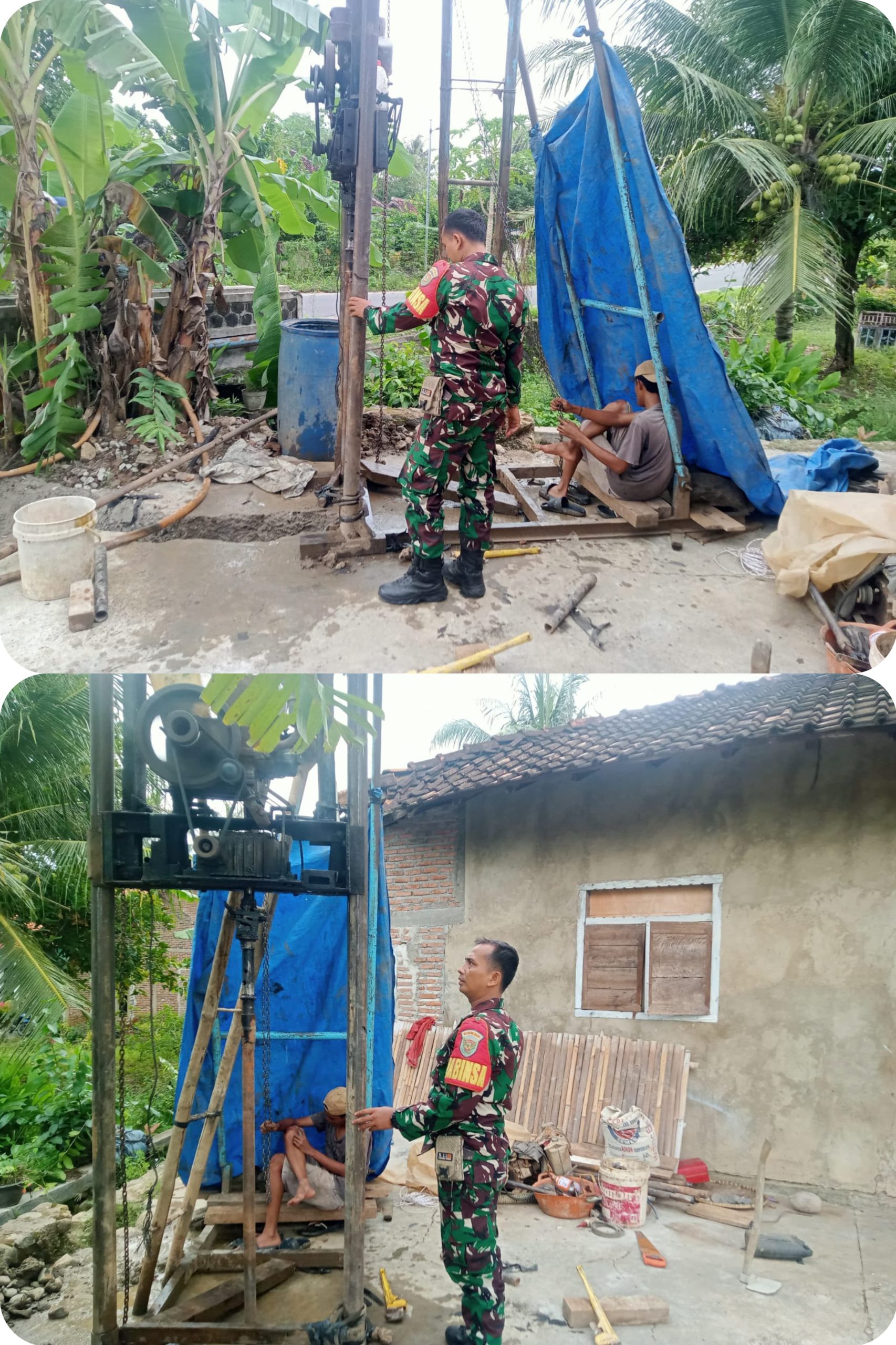 Dalam hal ini, Babinsa Koramil 01/Kedondong, Kodim 0421/Lampung Selatan, Sertu Pusan Hariyanto lakukan monitoring dan pendampingan pembuatan sumur bor, kegiatan TNI manunggal air bersih di Desa Banjar Negeri Kecamatan Way Lima, Kabupaten Pesawaran.