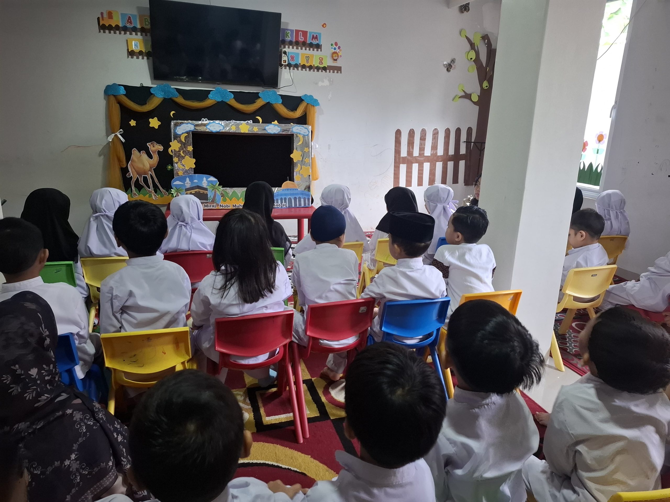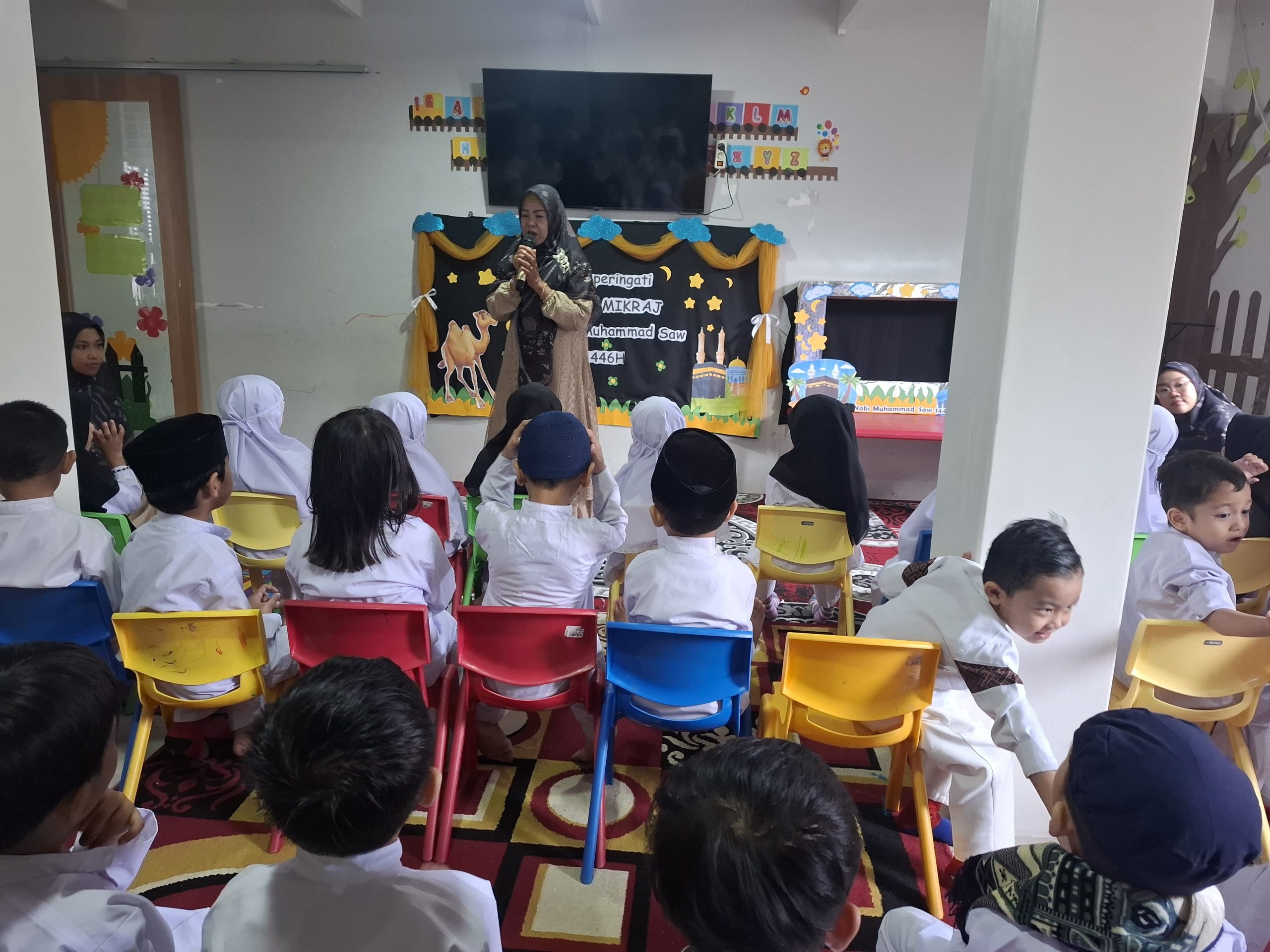Selain storytelling, anak-anak juga diajak menyanyikan nasyid bertema Isra Mikraj. Lagu-lagu islami ini tidak hanya menambah semarak suasana, tetapi juga membantu anak-anak menghafal dan memahami makna peristiwa bersejarah ini dengan lebih mudah.