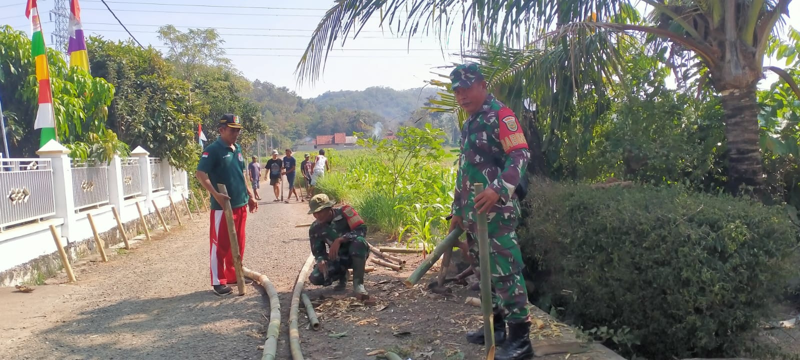 Hari ini kita bersama-sama masyarakat bahu membahu bergotong royong membuat rambu jalan di lingkungan desa supaya terlihat rapih dan terkesan terawat sehingga nampak indah, tentu nya kami sebagai aparat kewilayahan mengidukasi kembali budaya gotong royong,”ujar Sertu Sugiyanto