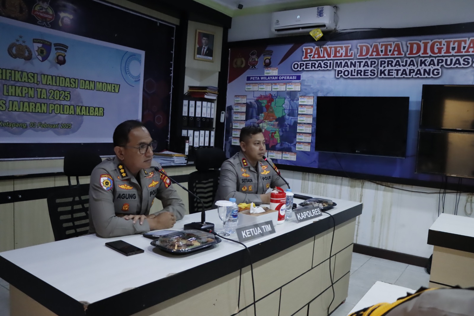 klivetvgindonesia.com.Kabupaten Ketapang, -Kalimantan Barat -Polda Kalbar,– Polres Ketapang, – Tim Inspektorat Pengawasan Daerah (Itwasda) Polda Kalimantan Barat melakukan kunjungan kerja ke Polres Ketapang dalam rangka pelaksanaan verifikasi dan monitoring evaluasi (Monev) Laporan Harta Kekayaan Penyelenggara Negara (LHKPN) di jajaran Polres Ketapang, Senin (03/02/2025).
