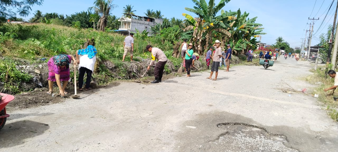 Siak,||Klivetvindonesia.com – Bhabinkamtibmas Polsek Kandis Bripka Rudi Simangunsong bersama warga masyarakat desa binaannya melaksanakan Gotong Royong Membersihkan Rumput-rumput dan saluran air di pinggiran jalan Kelurahan Kandis Kota Kecamatan Kandis.
