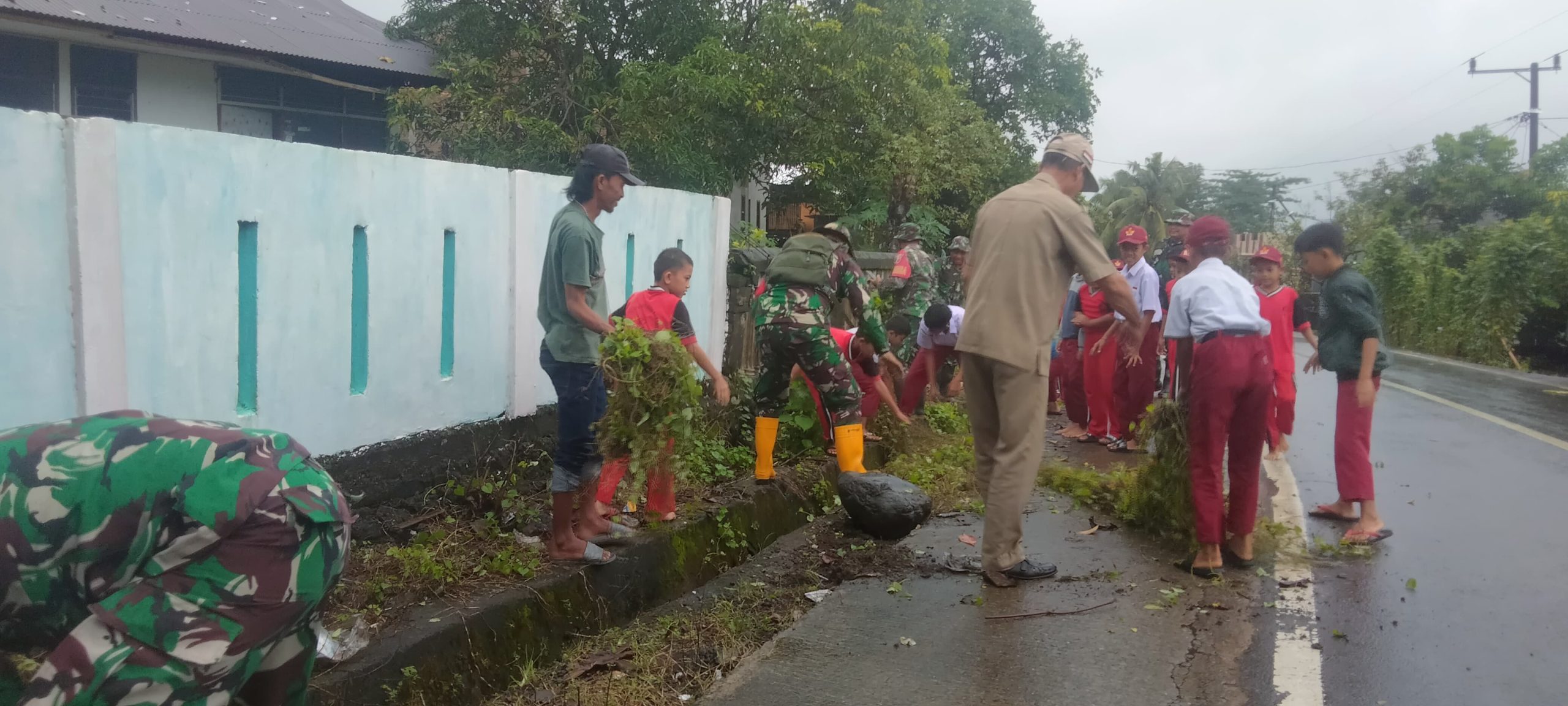 TAKALAR – KLTV INDONESIA.COM Personel Koramil 1426-01/Polut Kodim 1426/Takalar, mengajak Siswa Siswi SD Negeri No 127 Ko’mara melaksanakan kegiatan kerja bakti bersihkan selokan dan bahu jalan yang banyak ditumbuhi rumput liar di Desa Ko’mara, Kecamatan Polongbangkeng Utara Kabupaten Takalar. Selasa, 11/02/2025.