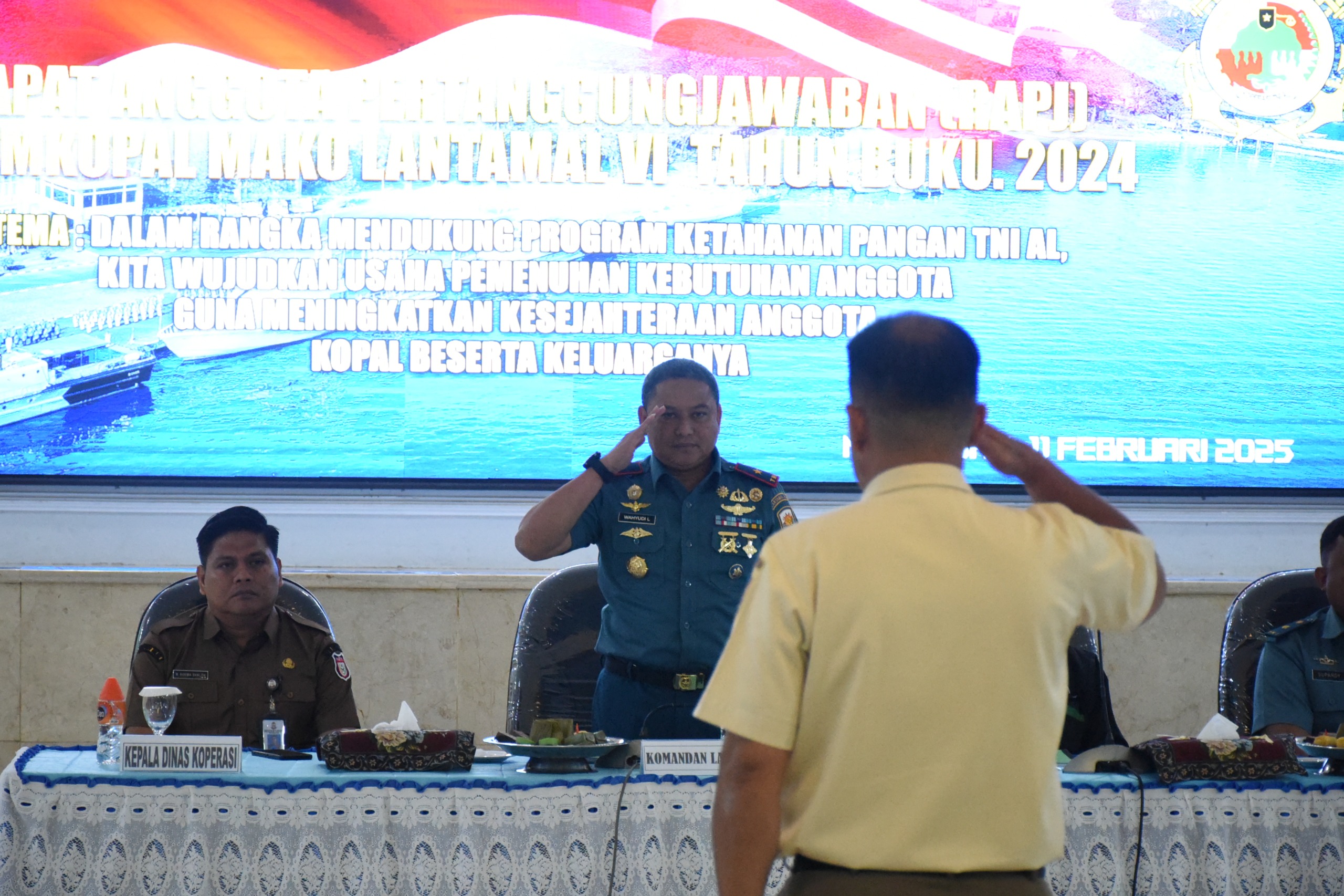 RAPJ yang bertemakan “Dalam Rangka Mendukung Program Ketahanan Pangan TNI AL, Kita Wujudkan Usaha Pemenuhan Kebutuhan Anggota Guna Meningkatkan Kesejahteraan Anggota kopal Beserta Keluarganya” ini dibuka langsung oleh Danlantamal VI Makassar yang dihadiri oleh Wadan Lantamal VI Kolonel Laut (P) Dados Raino beserta Para PJU Lantamal VI dan para undangan lainnya.
