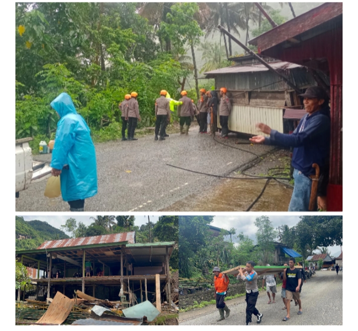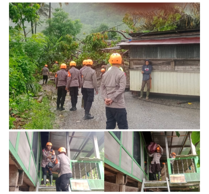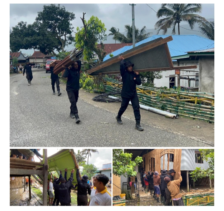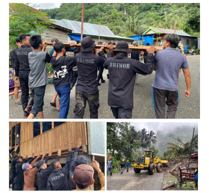 Dengan sigap, personel Tim SAR Brimob bekerja sama dengan warga setempat untuk membersihkan puing-puing dan mengevakuasi barang-barang berharga yang masih bisa diselamatkan.