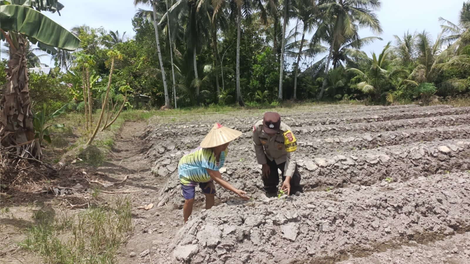 Klivetvgindonesia.com.Kabupaten Ketapang, -Kalimantan Barat – Polda Kalbar -, Dalam upaya mendukung ketahanan pangan dan meningkatkan kesejahteraan petani lokal, Bhabinkamtibmas Desa Sungai Besar Polsek Matan Hilir Selatan Polres Ketapang, Bripka Wawan, turun langsung menemani petani setempat menanam cabai dan terong. Kegiatan tersebut berlangsung pada pagi hari Kamis (13/02/2025). di lahan milik Ibu Wiwit, seorang petani lokal yang sudah berpengalaman dalam bertani hortikultura.