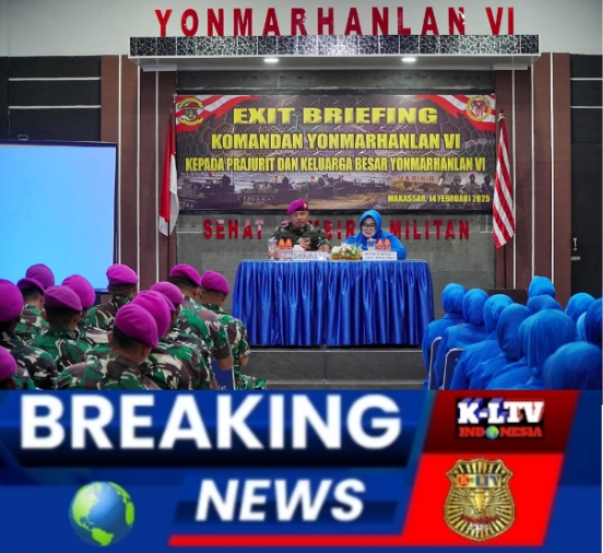 –klivetvindonesia.com– TNI AL, Dispen Kormar (Makassar) – Komandan Batalyon Marinir Pertahanan Pangkalan (Yonmarhanlan) VI Makassar, Mayor Marinir Yusman Efendi, M.Tr.Opsla., menggelar acara Exit Briefing bersama prajurit dan keluarga besar Yonmarhanlan VI Makassar menjelang akhir masa jabatannya. Acara yang berlangsung penuh kehangatan ini digelar di Balai Prajurit Serda KKO Soepardi, Mako Yonmarhanlan VI Makassar, Jalan Yos Sudarso No. 308, Jumat (14/02/2025).