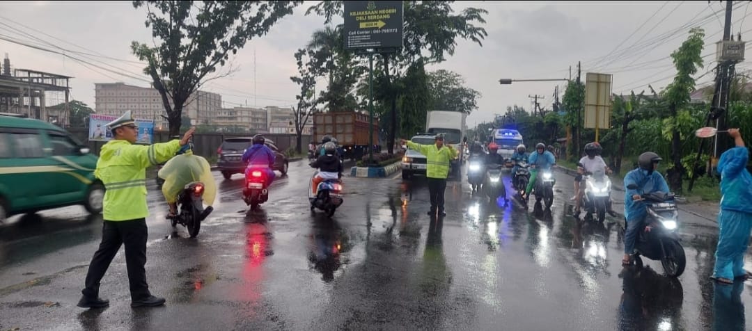 Klivetvindonesia.com Deli Serdang – Satuan Lalu Lintas (Sat Lantas) Polresta Deli Serdang, melakukan pengaturan lalu lintas di Jalan Lintas Medan – Lubuk Pakam. Jumat (14/02/25)