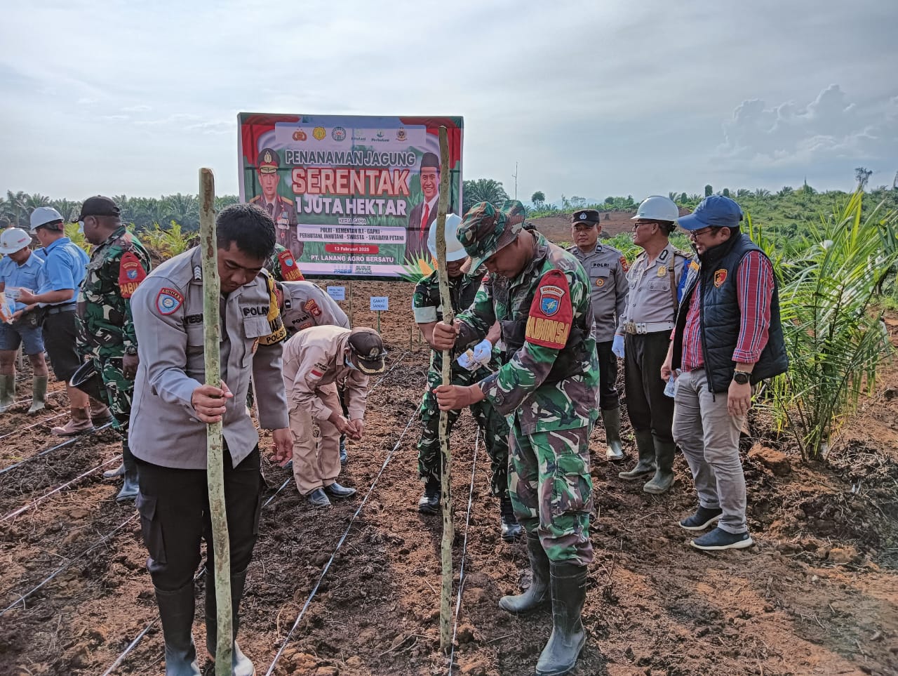 Klivetvgindonesia.com.Kabupaten Ketapang, -Kalimantan Barat – Polda Kalbar -,Dalam upaya mendukung program ketahanan pangan dan peningkatan perekonomian masyarakat, Polsek Sandai Polres Ketapang bekerja sama dengan perusahaan PT. LAB menggelar kegiatan penanaman jagung hibrida di lahan tumpeng sari milik Perusahaan PT. Lanang Garo Bersatu . Kegiatan ini berlangsung pada Kamis (13/02/2025), dan dihadiri oleh jajaran kepolisian khususnya Polsek Sandai, perwakilan perusahaan, serta warga setempat.
