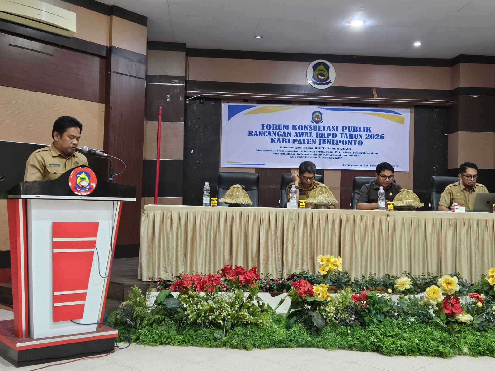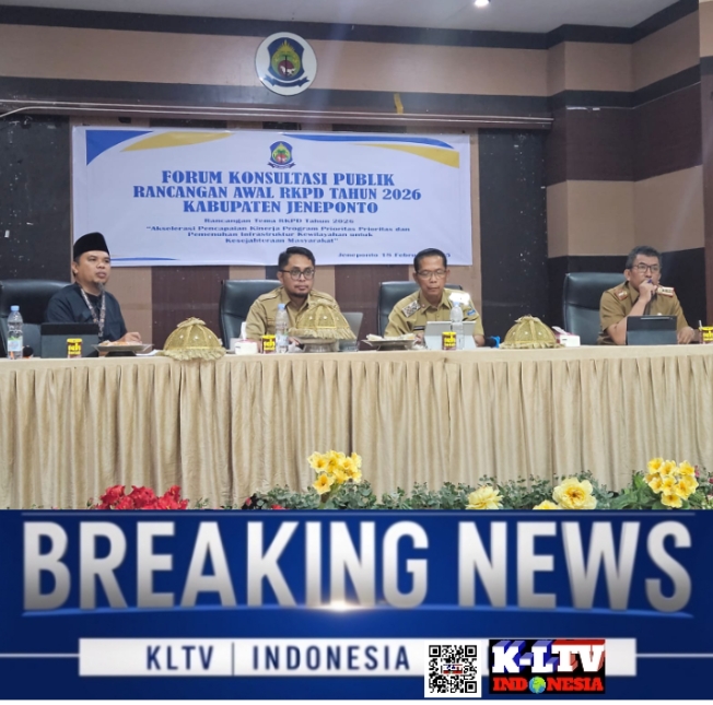 –klivetvindonesia.com-– Pemerintah Kabupaten Jeneponto menggelar Forum Konsultasi Publik Rancangan Awal Rencana Kerja Pemerintah Daerah (RKPD) Tahun 2026 di Aula Kalabbirang, Rumah Jabatan Bupati Jeneponto.18 Februari 2025