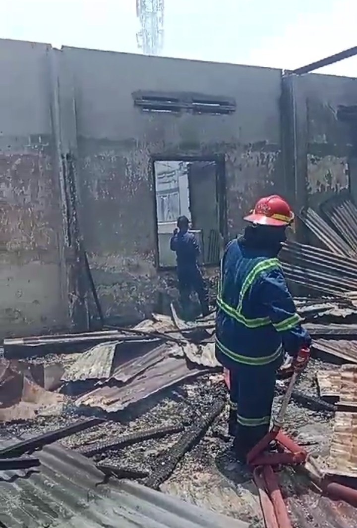 proses pemadaman api yang berlangsung dengan tim pemadam kebakaran yang terus berusaha mengendalikan api. Untuk memastikan keamanan, polisi militer dan pihak kepolisian telah memasang garis batas di sekitar lokasi kebakaran, dan petugas dari Pemadam kebakaran sedang melakukan upaya pendinginan di area yang terdampak.