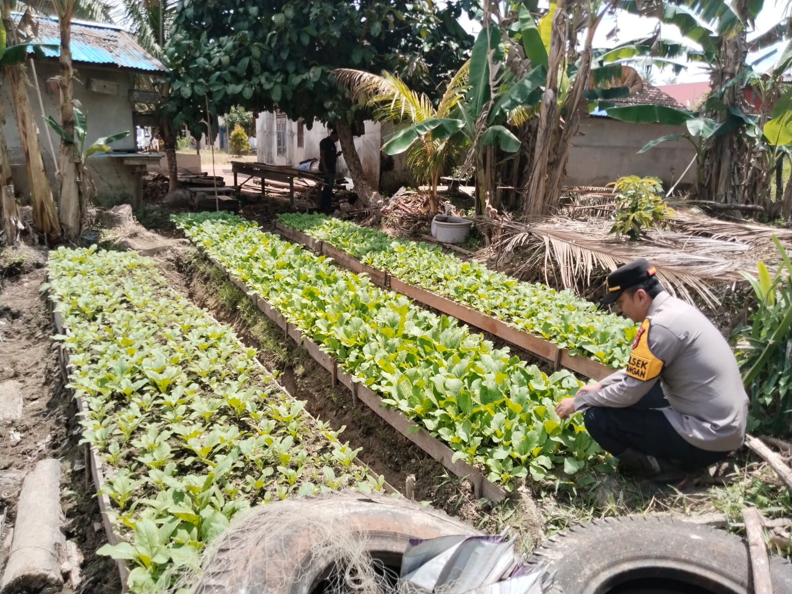 Kapolsek Kendawangan, IPTU Bagus Tri Baskoro, bersama anggota Polsek, mengunjungi lokasi pekarangan tersebut untuk mengevaluasi hasil dan perkembangan dari tanaman yang ditanam oleh para petani. Pekarangan Pangan Bergizi ini merupakan program yang bertujuan untuk meningkatkan ketersediaan pangan bergizi yang mudah diakses oleh warga desa.