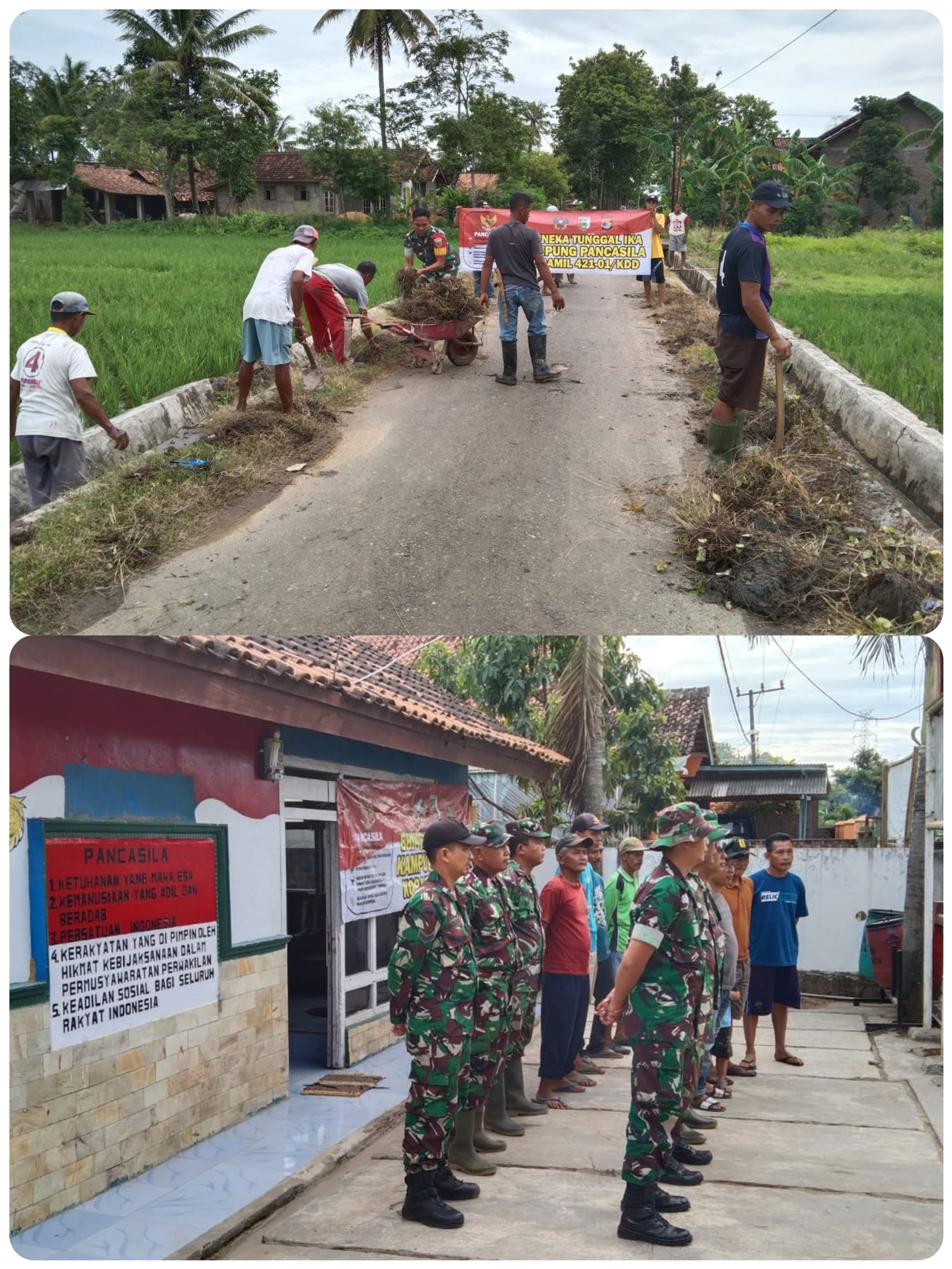 Klivetvindonesia,com. Pesawaran-Program TNI-AD di antaranya adalah Kampung Pancasila. Kampung Pancasila di jajaran Wilayah Koramil 421-01/Kedondong adalah Desa Paguyuban yang ada Kecamatan Way Pelda Marsudi Sebagai Babinsa Desa Paguyuban bersama Kepala Desa Bapak Sigit bersama Masyarakat bahu- membahu membersihkan jalan lingkungan pada Minggu (23/2/2025).