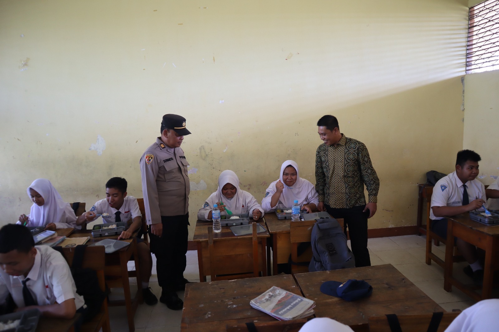 Setelah pengecekan dapur, AKP Drajat Pamungkas bersama rombongan melanjutkan pemantauan ke sekolah-sekolah penerima bantuan makanan bergizi. Program pendistribusian ini melibatkan Dinas Pendidikan, Dinas Kesehatan, dan pihak sekolah, yang bekerja sama untuk memastikan makanan sampai ke tangan siswa dengan baik.