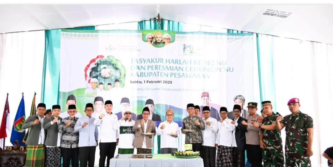 Klivetvindonesia,com. Pesawaran- Pesawaran Bupati Pesawaran Dr. H. Dendi Ramadhona, S.T., M.Tr.I.P. hadir dalam acara Tasyakuran Hari Lahir (Harlah) Ke-102 Nahdatul Ulama (NU) sekaligus Peresmian Gedung PCNU Kabupaten Pesawaran yang berlokasi di Komplek Islamic Center Pesawaran pada Sabtu, (1/2/2025).