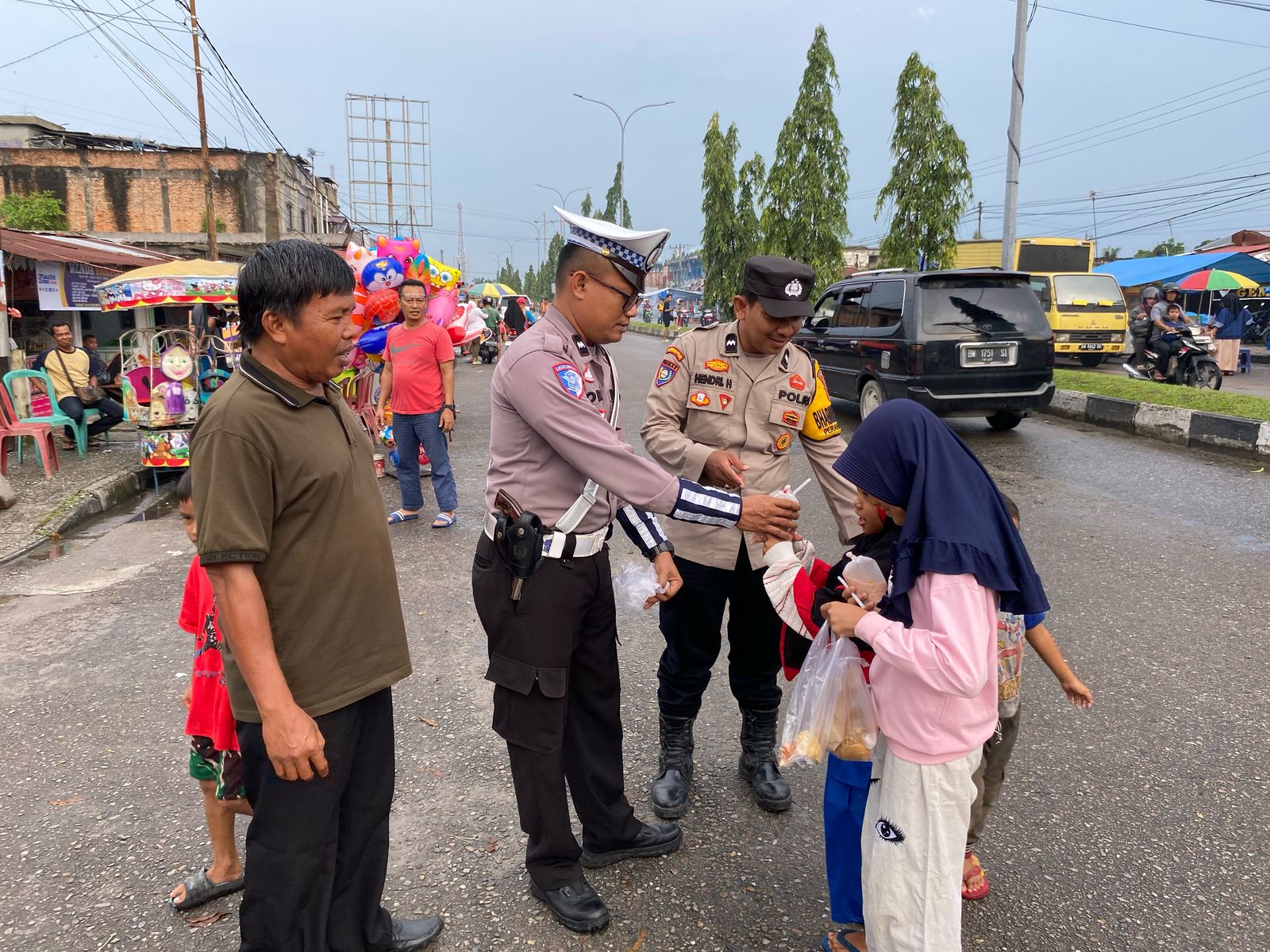 Kompol Hendrix memimpin langsung kegiatan pembagian takjil tersebut. Sebanyak 80 bungkus yang telah disiapkan untuk diberikan kepada masyarakat. Dengan ramah, beliau dan anggota menyapa para pengendara sambil memberikan takjil untuk berbuka puas.