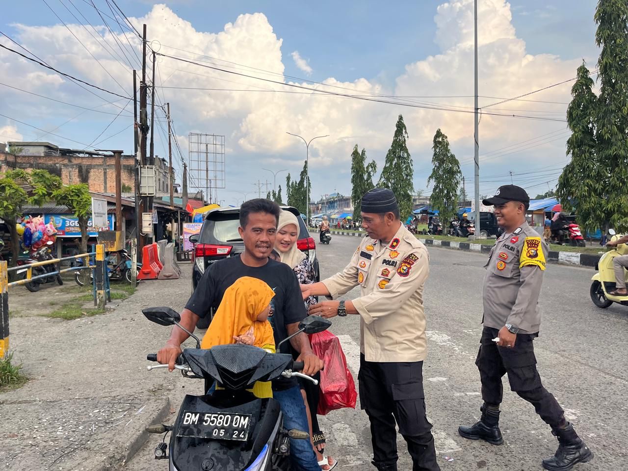 Kegiatan ini merupakan bentuk kepedulian kami dari Polsek Tualang kepada masyarakat. Semoga dengan takjil yang kami bagikan ini dapat membantu mereka untuk berbuka puasa,” ujar Kompol Hendrix.