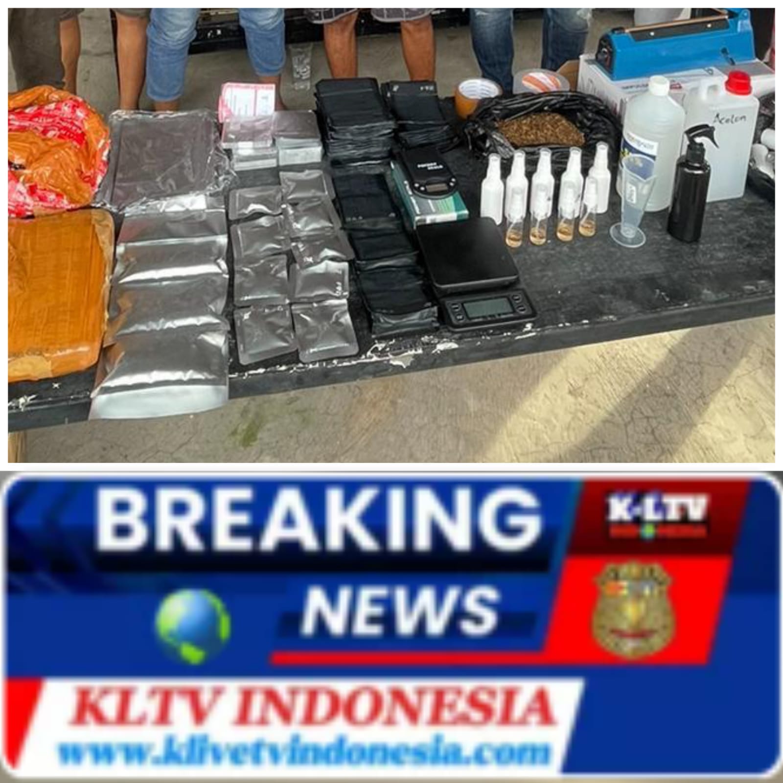 Dalam operasi tersebut, petugas menemukan sejumlah barang bukti berupa 2 kilogram ganja, 524 gram tembakau sintetis, serta cairan sintetis siap pakai sebanyak 90 mililiter. Selain itu, polisi juga mengamankan alat press sachet aluminium foil, timbangan digital, ratusan sachet aluminium foil kosong berbagai ukuran, serta beberapa botol spray berisi cairan sintetis.