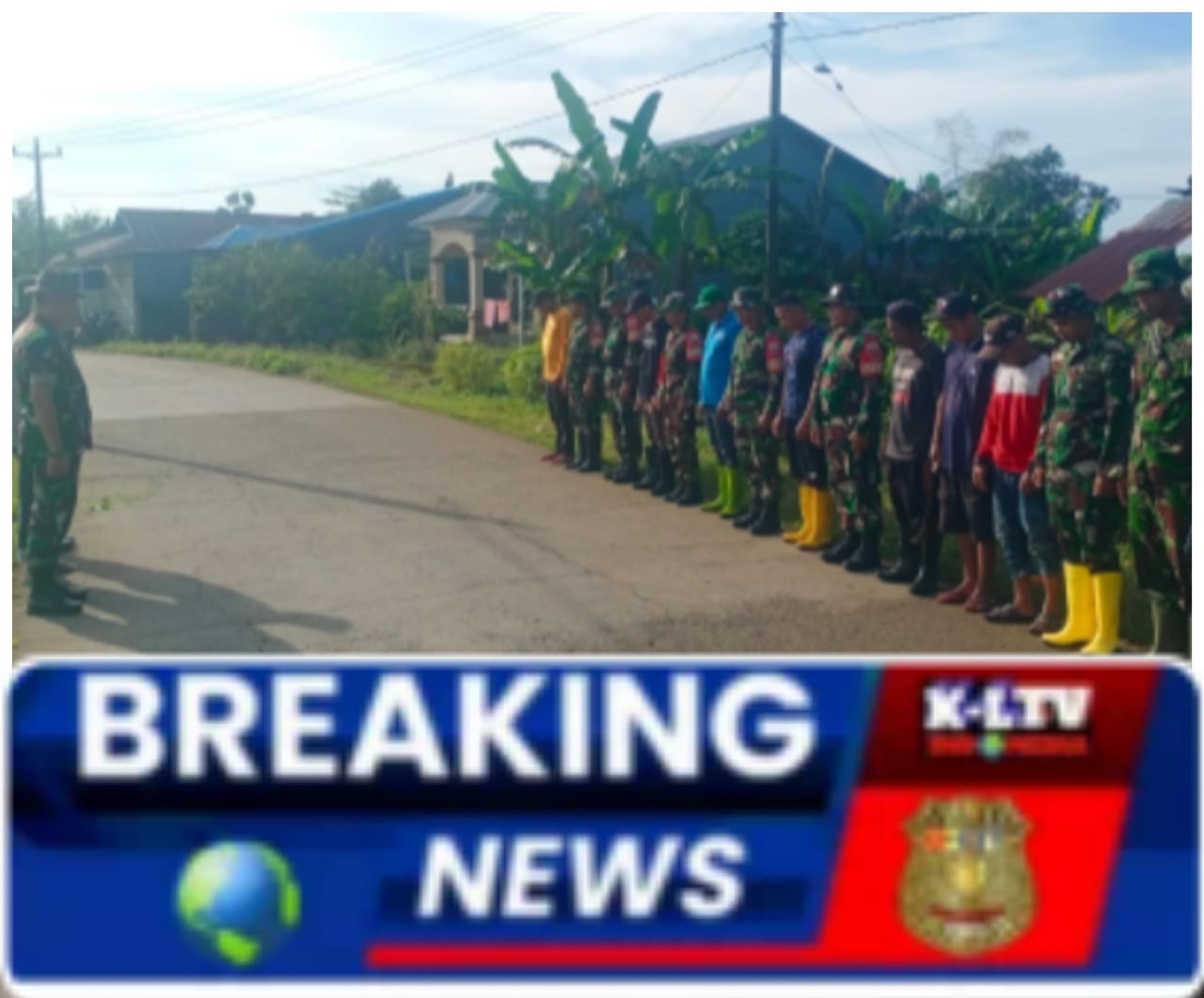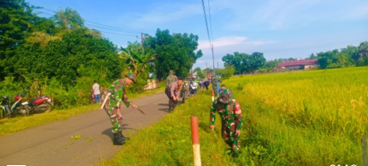 Koramil 1426-01/Polut Bersama Warga Kerja Bakti Bersihkan Selokan Dan Bahu Jalan