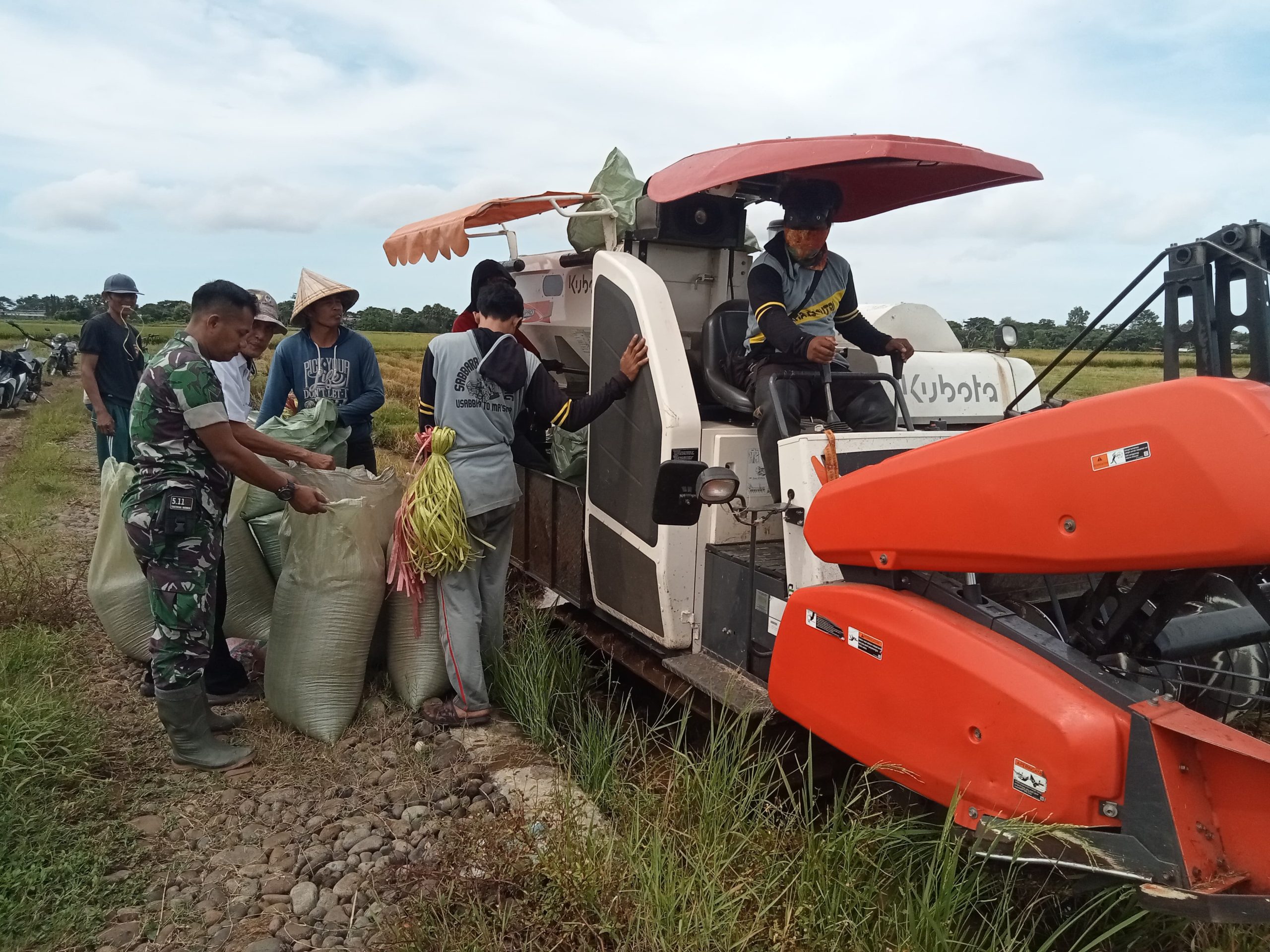 Tingkatkan Swasembada Pangan, Babinsa Koramil 1426-05/Marbo Pendampingan Petani Panen Padi