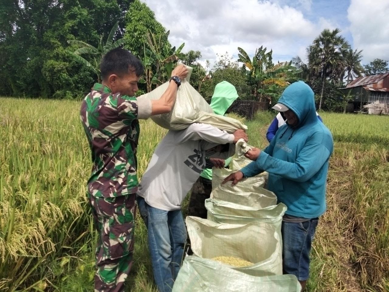 “Ini sudah merupakan tugas kami sebagai aparat kewilayahan yaitu memantau serapan gabah, membantu para petani dalam hal pertanian seperti kegiatan panen padi yang sedang berlangsung merupakan wujud kemanunggalan TNI- Rakyat, “ujarnya.