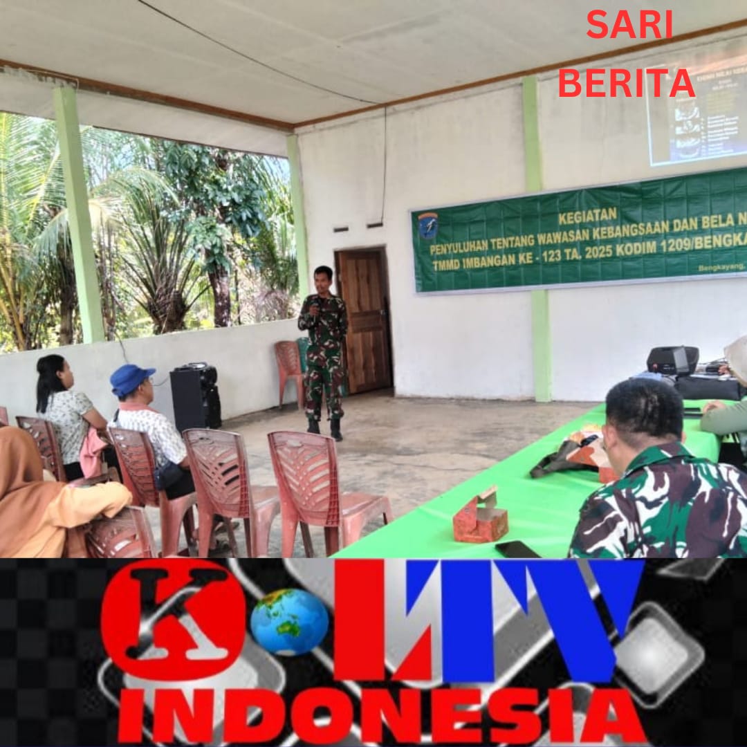 Klivetvindonesia.com.BengkayangDalam upaya menanamkan semangat nasionalisme sejak dini, Satgas TNI Manunggal Membangun Desa (TMMD) imbangan ke-123 Kodim 1209/Bky gelar penyuluhan wawasan kebangsaan di Aula Desa.Sekida,Kec.Jagoi Babang Kab.Bengkayang.