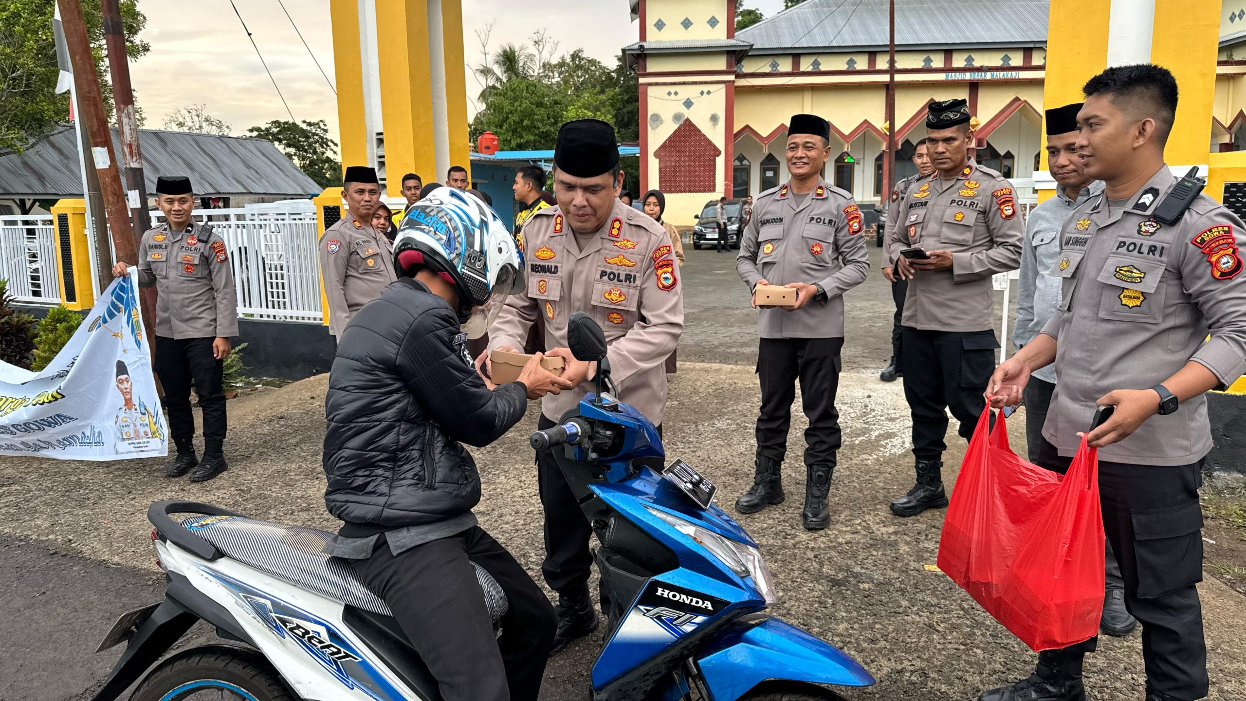 klivetvindonesia.comKapolres Gowa AKBP. Siminjutak, S.H., S.I.K., M.M. bersama PJU Polres Gowa dan Kapolsek Tompobulu melakukan kegiatan sosial dengan membagikan takjil untuk buka puasa kepada warga masyarakat Tompobulu di Masjid Malakaji, Kabupaten Gowa, pada 15 Maret 2025 Jumat sore pukul 18.00.
