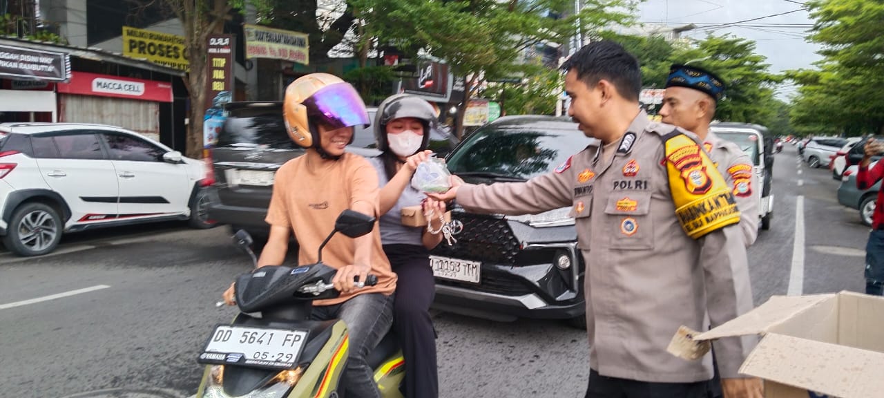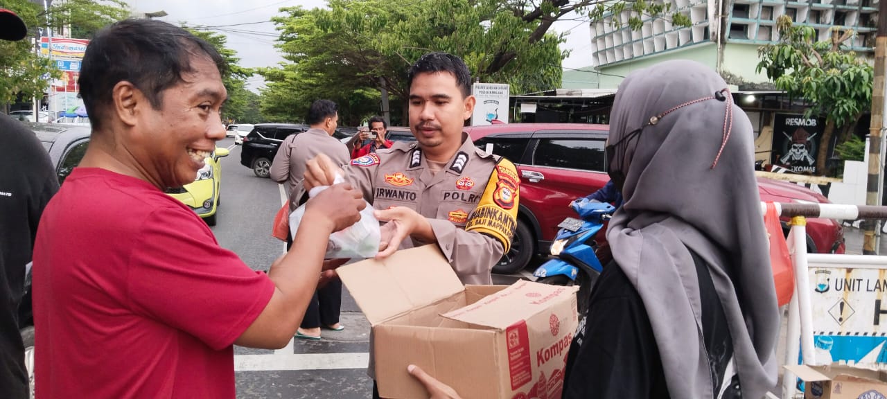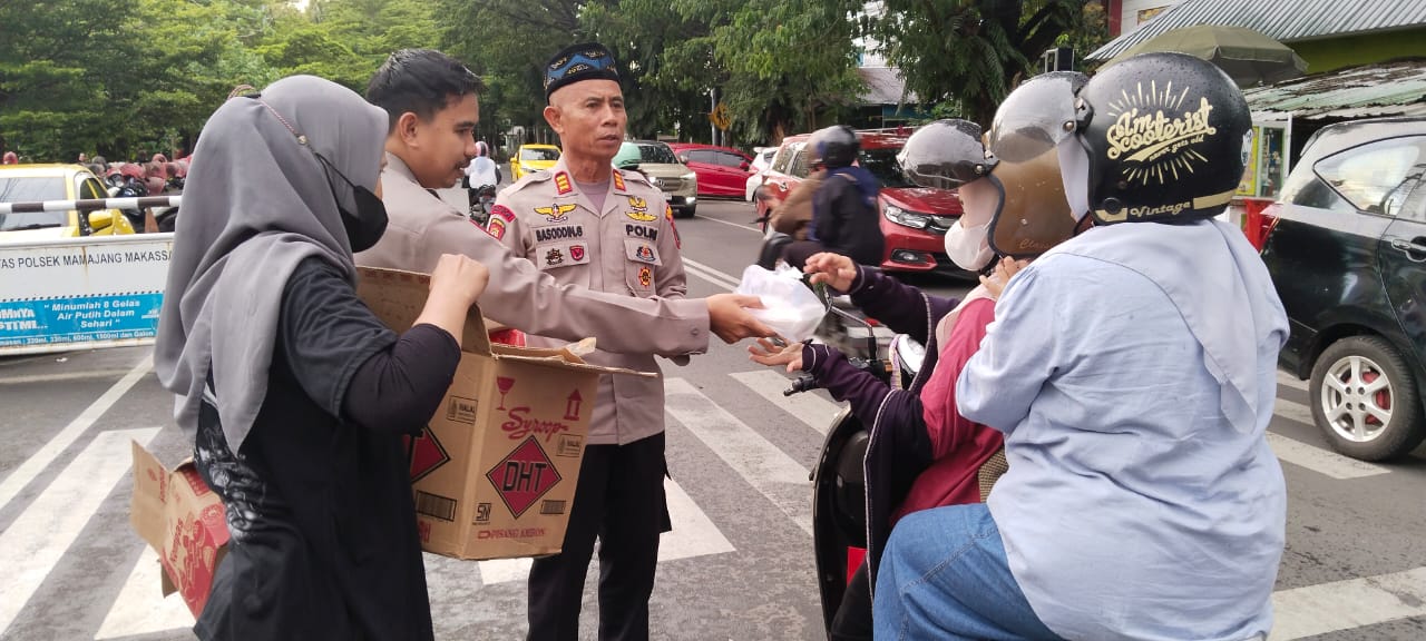 Kapolsek dan waka polsek mamajang beserta anggotanya. membagikan takjil dengan penuh senyum ramah kepada para pengendara yang melintas. Suasana hangat dan kekeluargaan pun terasa selama kegiatan berlangsung.