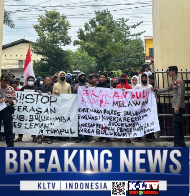 klivetvindonesia.com-– Ratusan massa yang tergabung dalam Aliansi Bulukumpa Melawan menggelar aksi unjuk rasa di depan Kantor Polres Bulukumba pada Senin, 17 Maret 2025.