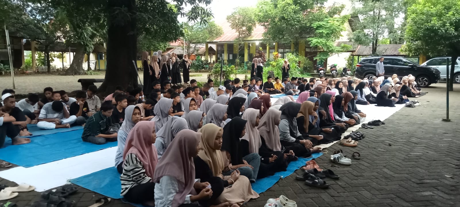 Ghina ghalin Nisa menyampikan susunan kegiatan, Pembukaan pembacaan tilawatil Qur’an oleh Mutia ilin supahmi Nascar,S.Pd.,M.Pd, Pengawas sekolah di dampingi oleh