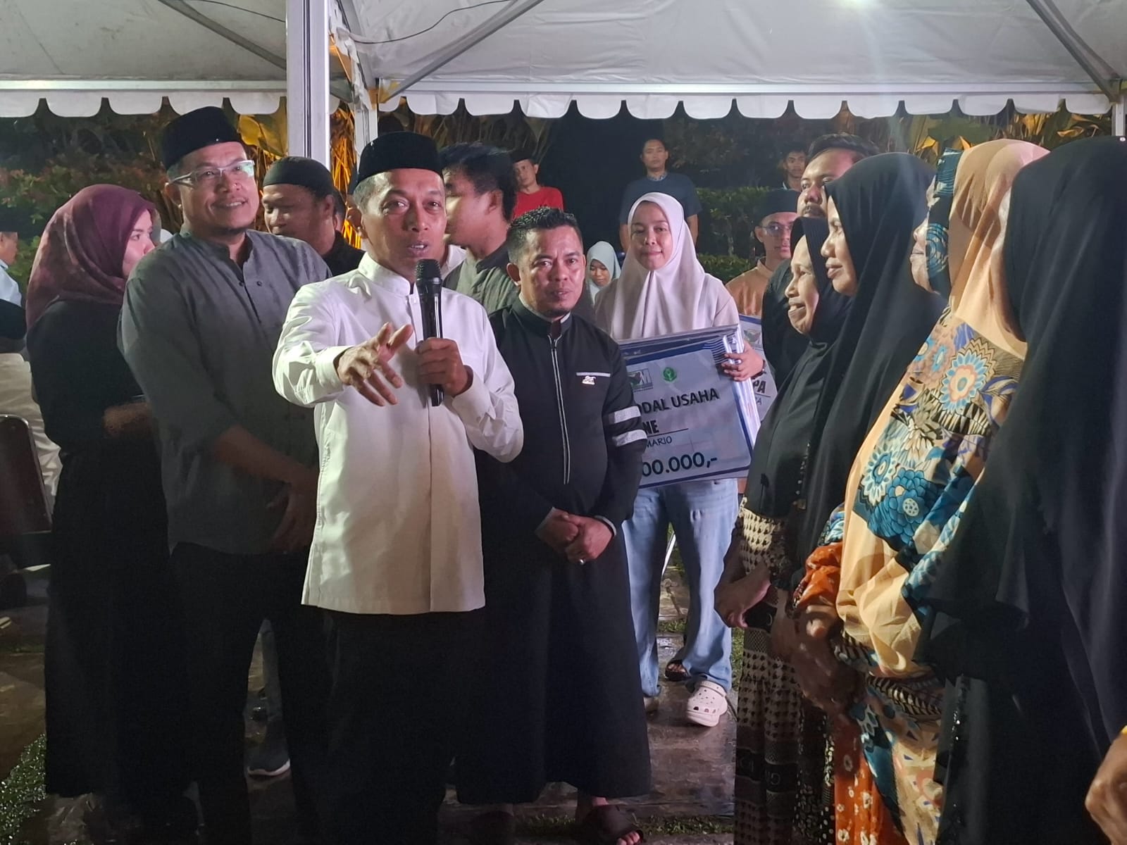 Usai berbuka puasa bersama dan penyerahan bantuan, acara kemudian dilanjutkan salat magrib dan tarawih bersama. (Risal Bakri).