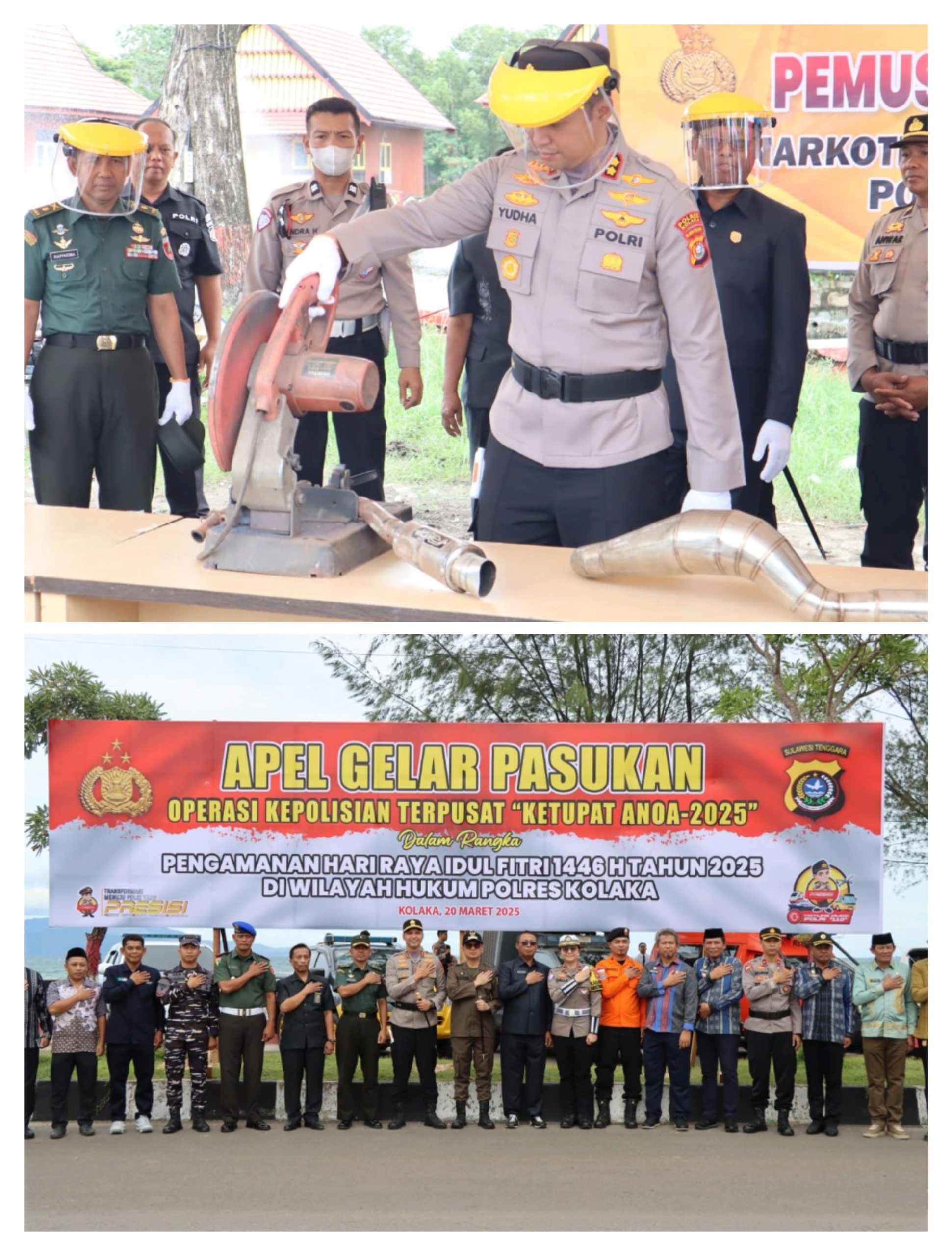 Operasi Kepolisian Terpusat dengan sandi Operasi ”Ketupat Anoa – 2025” akan dilaksanakan selama 14 hari, mulai tanggal 26 Maret hingga 8 April 2025. Polres Kolaka bersama instansi terkait menyatakan kesiapannya untuk mengamankan seluruh rangkaian kegiatan mudik dan perayaan Idul Fitri 1446 H/2025 M di wilayah hukum Polres Kolaka. Kegiatan apel gelar pasukan dan pemusnahan barang bukti ini diharapkan dapat memberikan rasa aman dan nyaman bagi masyarakat dalam menyambut hari raya.