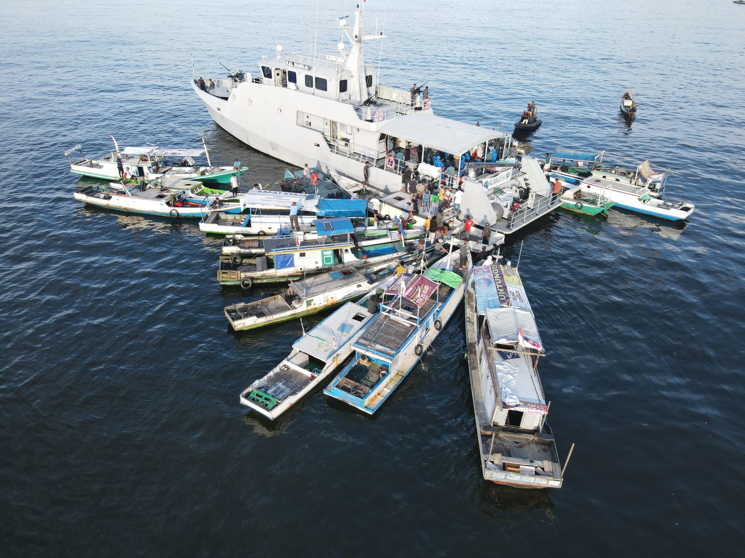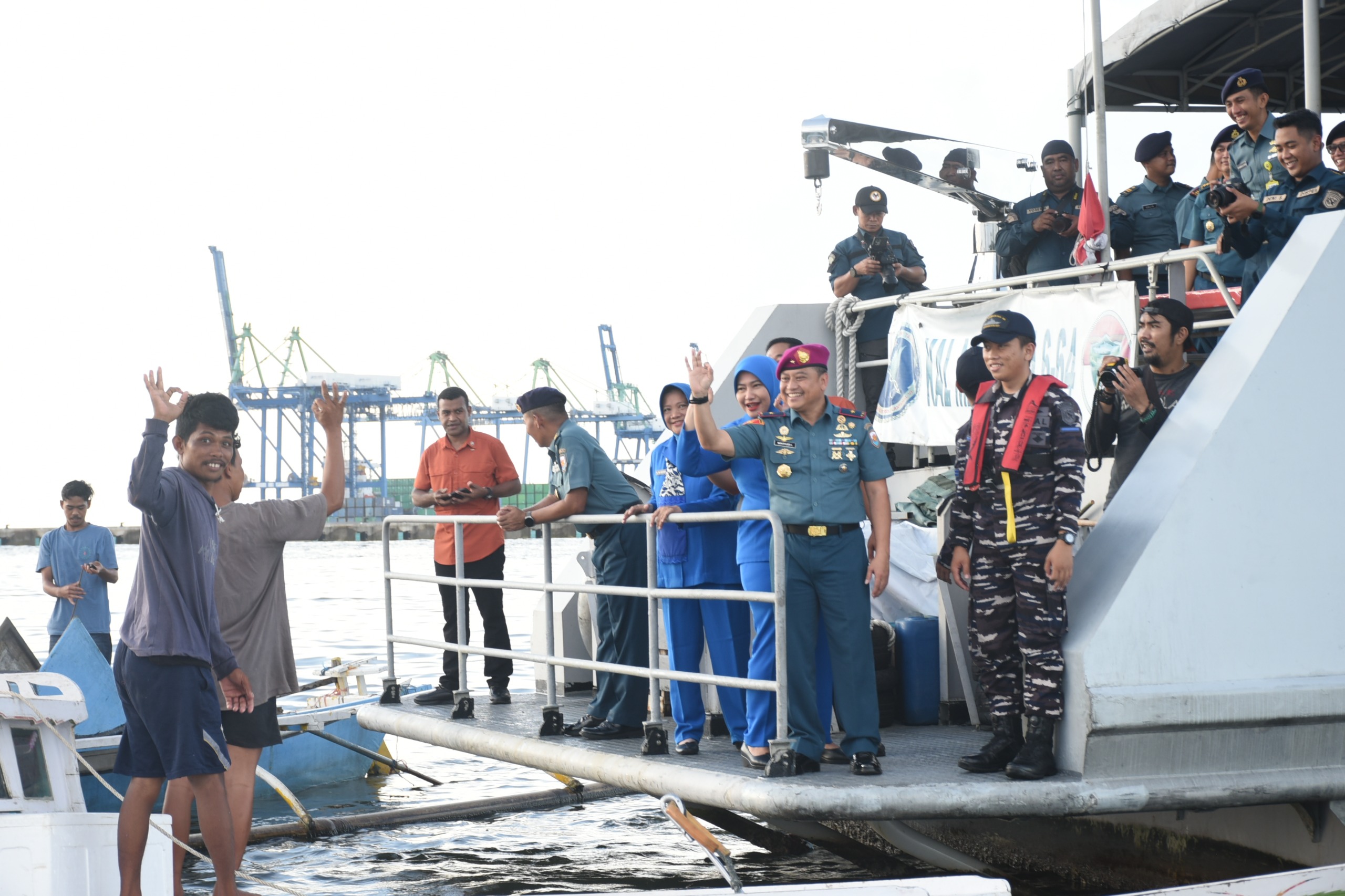 Danlantamal VI Makassar menyampaikan bahwa Kegiatan yang dilaksanakan hari ini yaitu memantau keamanan jalur laut dimana situasi yang berlangsung saat ini banyak nelayan yang berasal dari berbagai pulau-pulau yang ada di Sulawesi Selatan, sehingga dengan adanya situasi mudik lebaran kita memastikan kepada para nelayan ini bahwa keamanan jalur laut dari Makassar ke pulau-pulau tempat tinggal para nelayan ini aman untuk dilalui.