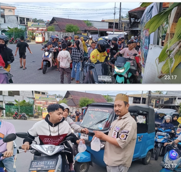 –Klivetvindonesia.com- Suara Independen Jurnalis Indonesia (SIJI) dan Forum Makassar Info kembali menggelar aksi ketiga kalinya berbagi kepada pengguna jalan yang melintas di perempatan lampu merah Jalan Sunu, Kelurahan Suwangga, Kecamatan Tallo, Kota Makassar, pada Minggu (23/3/2025).