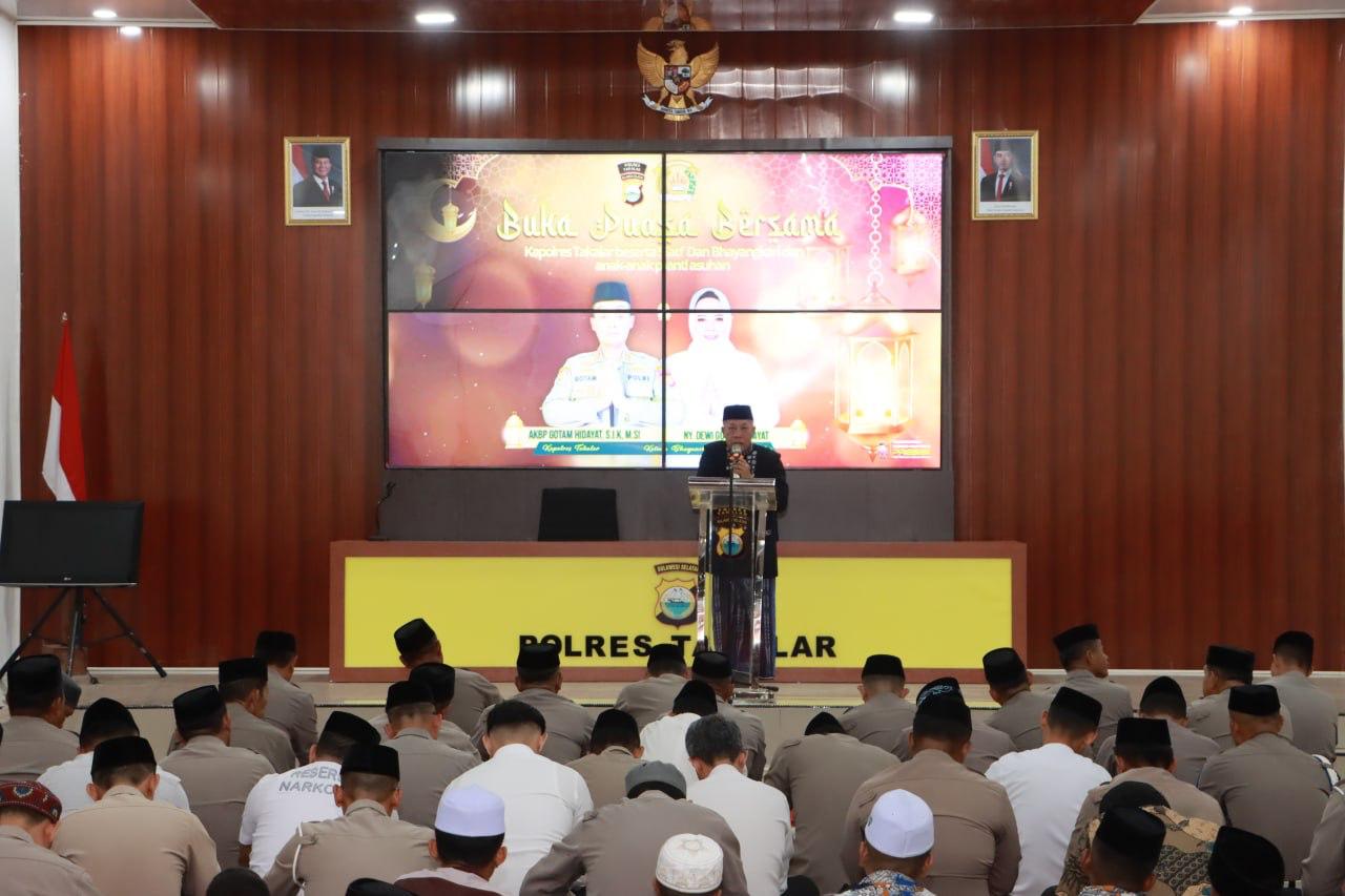 –klivetvindonesia.com– 24 Maret 2025 – Polres Takalar menggelar acara Buka Puasa Bersama di Aula Polres Takalar. Acara ini dihadiri oleh Kapolres Takalar, AKBP Gotam Hidayat, S.IK., M.Si, didampingi Ketua Bhayangkari Cabang Takalar, Ny. Dewi Gotam Hidayat, serta jajaran personel Polres Takalar dan pengurus Bhayangkari.