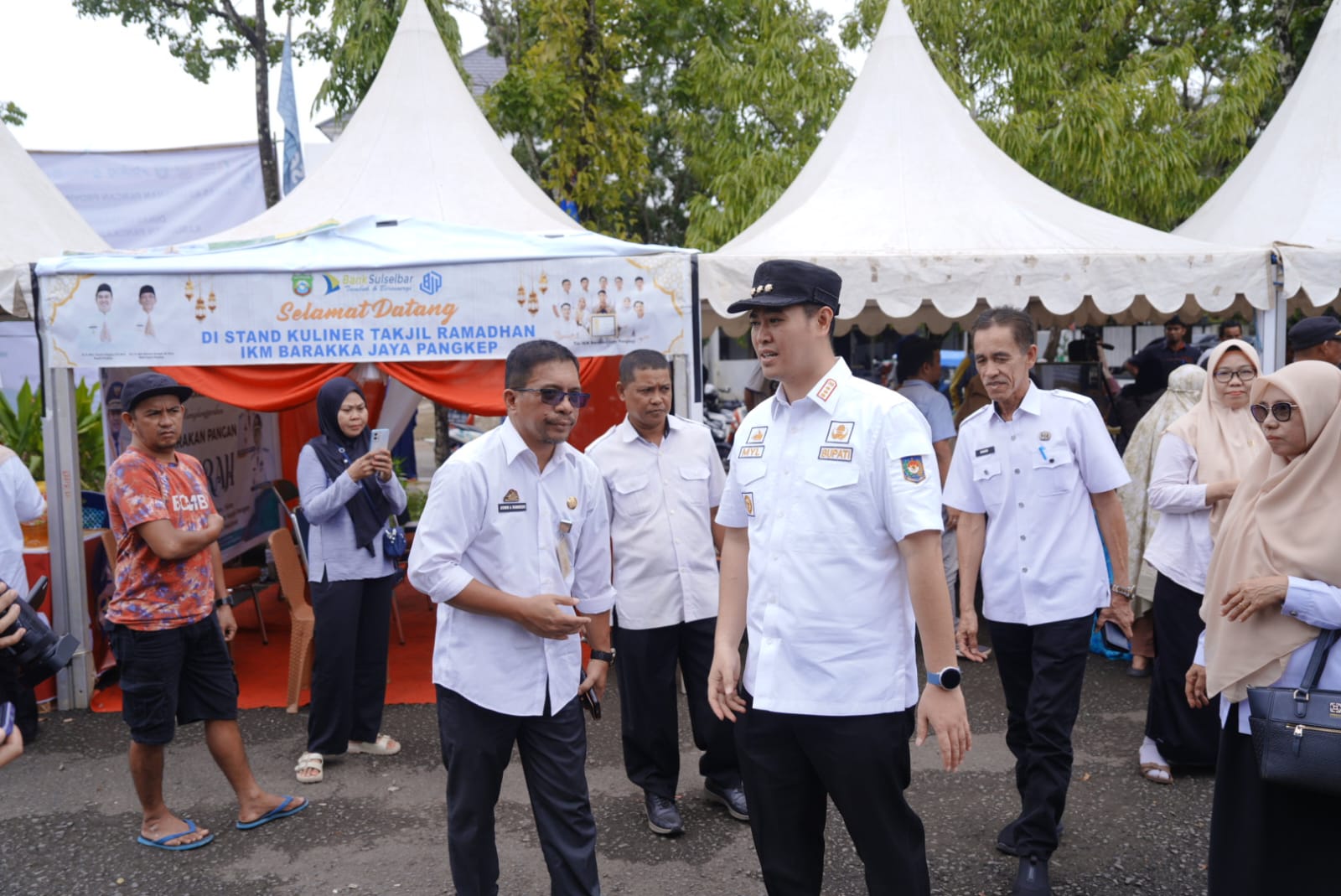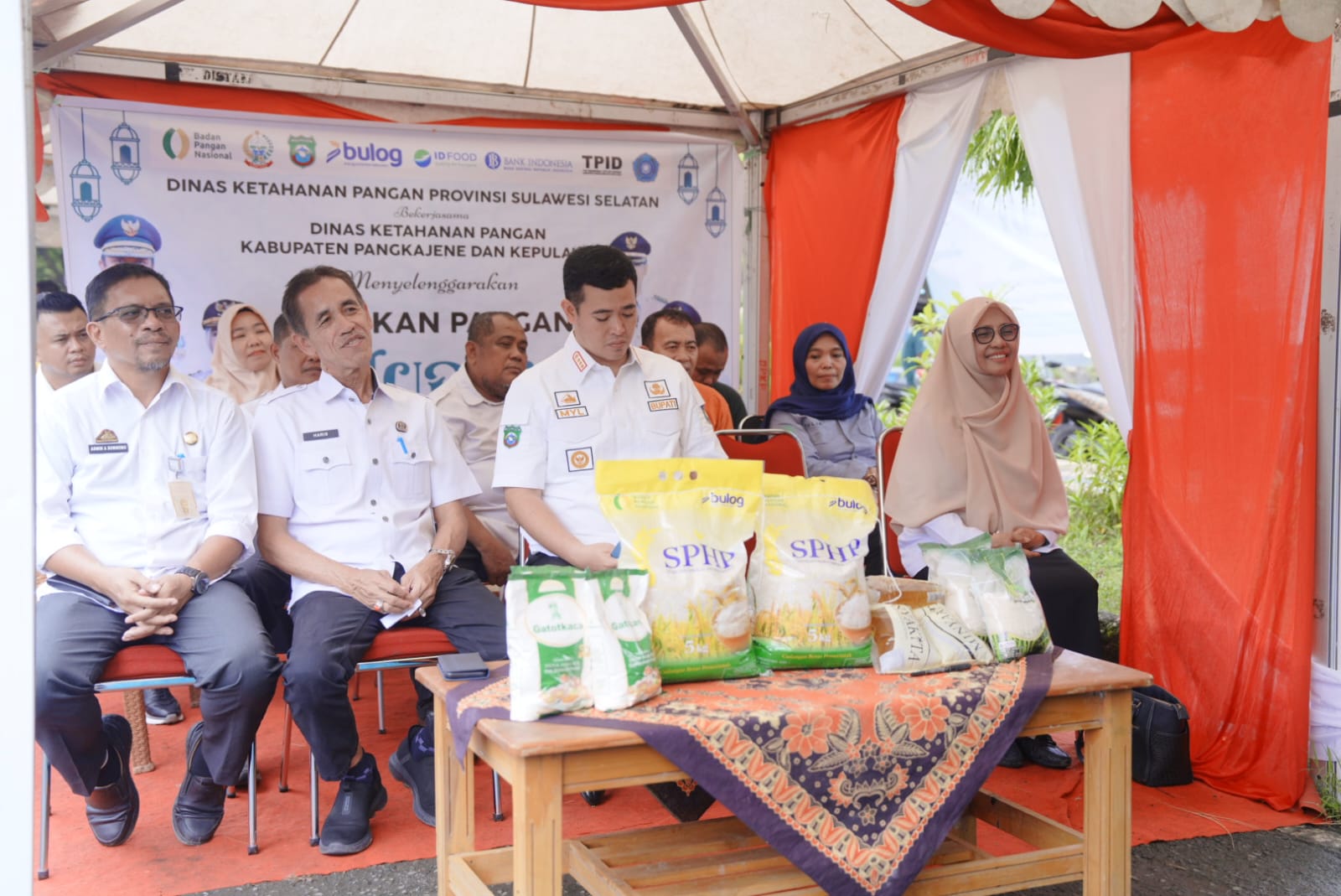Bupati Pangkep, Muhammad Yusran Lalogau membuka langsung pasar pangan murah didampingi Asisten II dan Kepala dinas Ketahan Pangan.