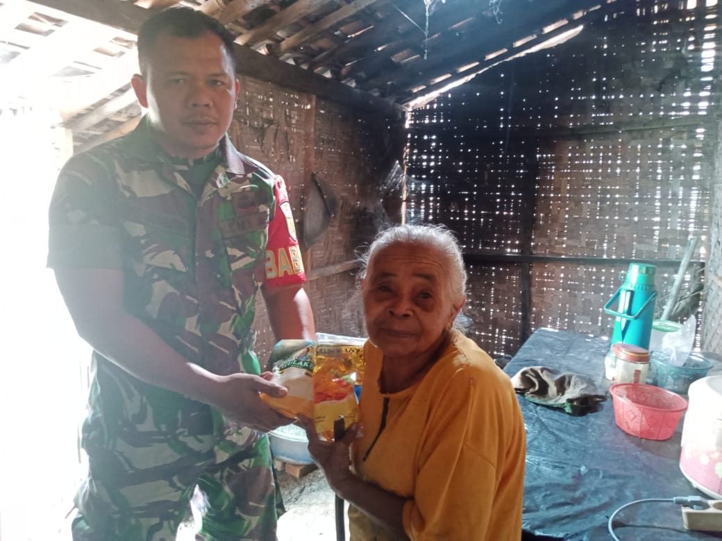 Sepaket Sembako Bukti Kasih Babinsa Kepada Warga Kurang Mampu