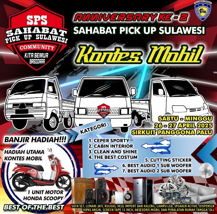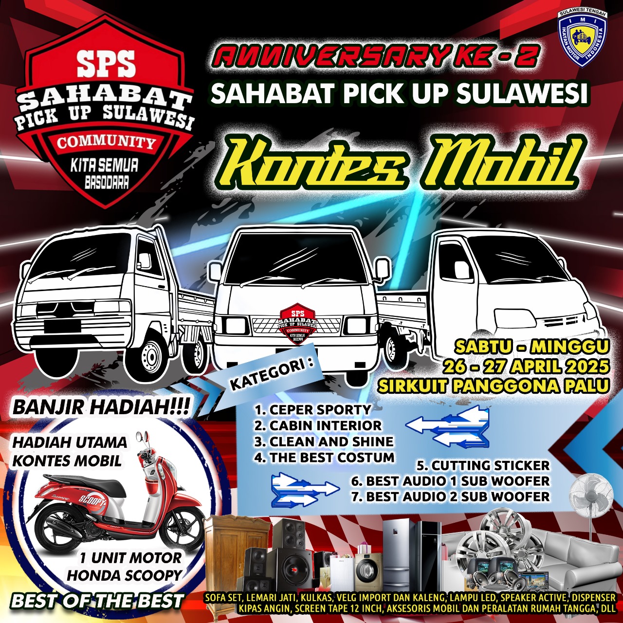 –klivetvindonesia.com– Sahabat Pic Up Sulawesi (SPS) akan merayakan anniversary yang ke-2 pada tanggal 26-27 April 2025 di Sirkuit Pangona, Kota Palu, Sulawesi Tengah.