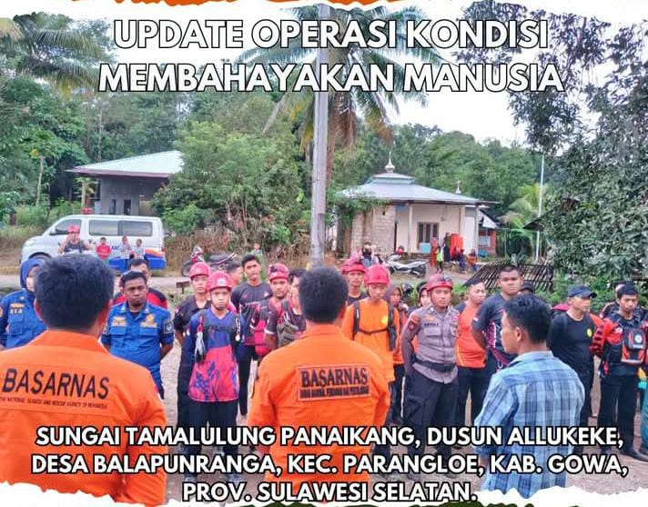 klivetvindonesia.com,Gowa, 11 April 2025 – Pencarian terhadap Amir bin Ahmad, seorang bocah laki-laki berusia 5 tahun yang diduga jatuh dan hanyut di Sungai Tamalulung, Dusun Allukeke, Desa Belapunranga, Kecamatan Parangloe, Kabupaten Gowa, Sulawesi Selatan, terus dilanjutkan memasuki hari kedua. Hingga saat ini, korban belum ditemukan.