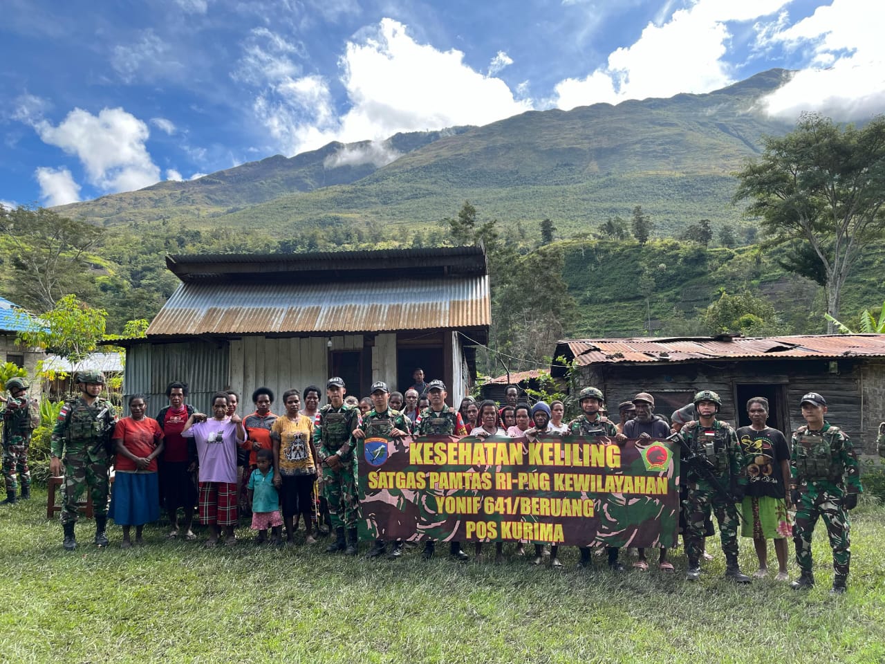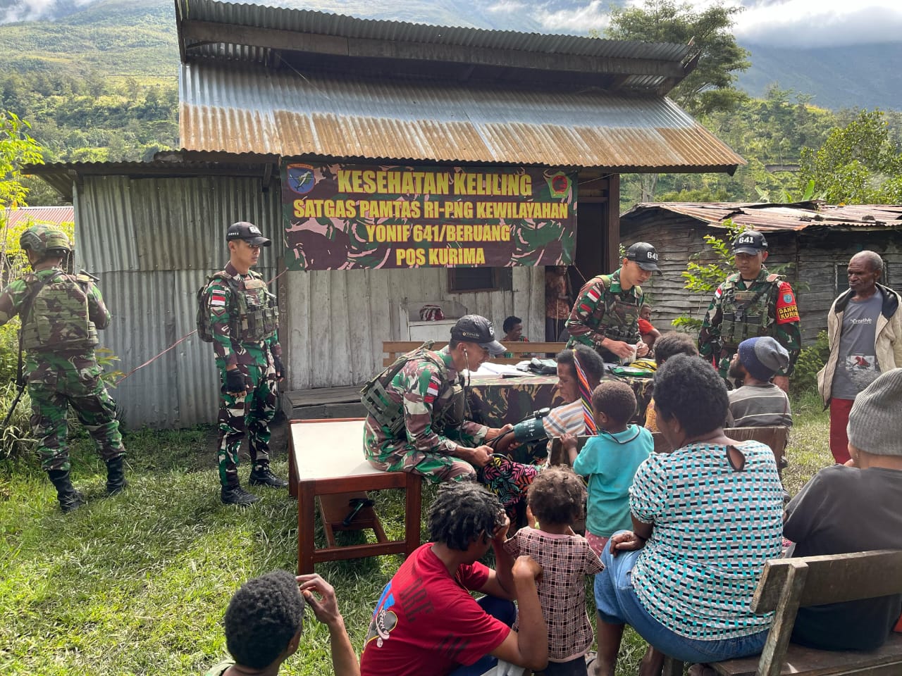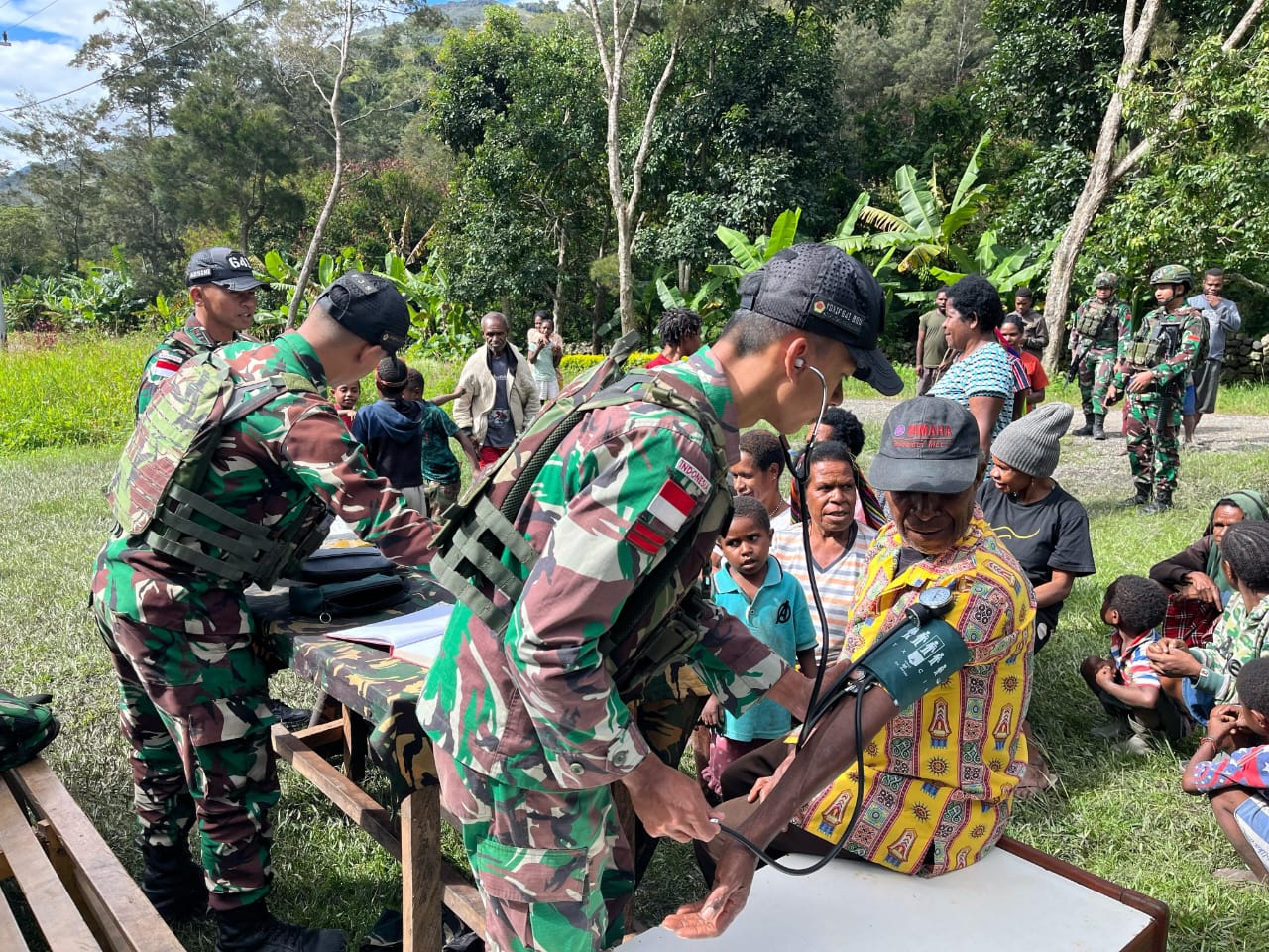 –klivetvindonesia.com– Yahukimo – Program Pemerintah pemeriksaan kesehatan gratis, Satgas Yonif 641/Bru melalui Pos Kurima melaksanakan pelayanan kesehatan keliling yang bertujuan untuk mencegah penyakit dan meningkatkan kualitas hidup warga Kampung Polimo Distrik Kurima, Kabupaten Yahukimo, Papua Pegunungan, (13/04/2025).