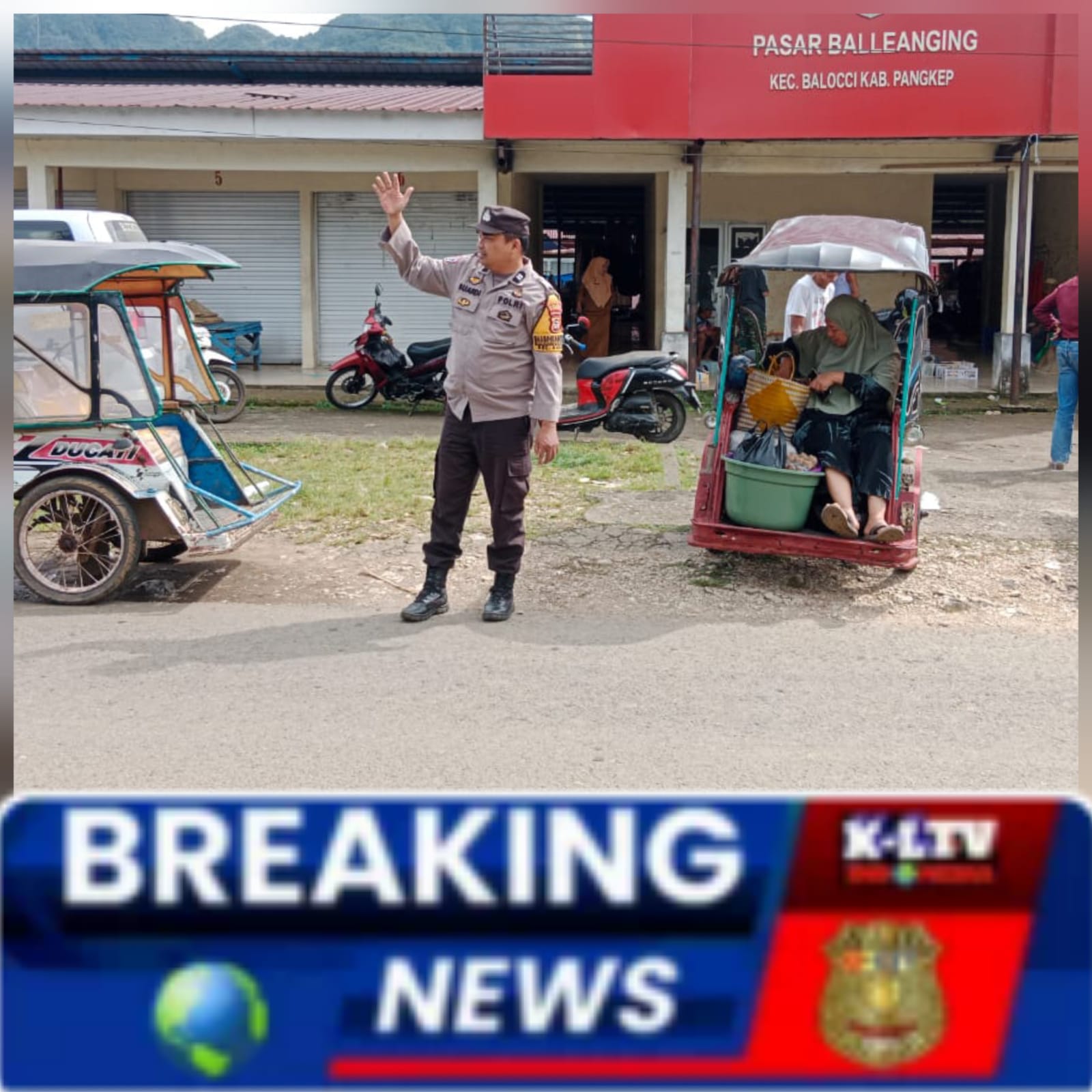 klivetvindonesia.com,Balocci Pangkep, ~ Pada hari Selasa 15 April 2025, Sebagai bagian dari tugas rutin untuk memastikan keamanan dan ketertiban di wilayah binaan, Bhabinkamtibmas Polsek Balocci Kelurahan Balleangin Aiptu Suardi melaksanakan kegiatan pengaturan lalulintas sekaligis sambang serta memantau kondisi perekonomian dan Pengaturan arus lalin di Pasar Tradisional Balleangin Kelurahan Balleangin Kecamatan Balocci Kabupaten Pangkep.
