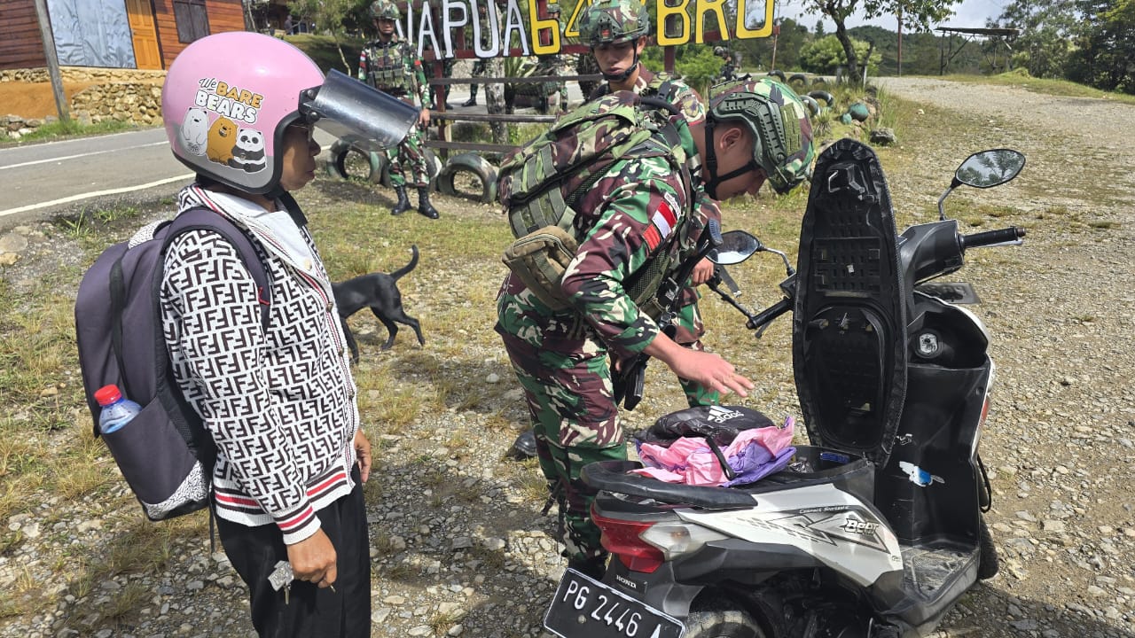 klivetvindonesia.com, Jayawijaya Demi menjalankan tugas pokok dan untuk memberikan rasa aman kepada masyarakat, Anggota Pos Napua melaksanakan sweeping kepada pengendara mobil, Sepeda motor serta pejalan kaki yang lewat di Distrik Napua, Kab. Jayawijaya, Prov. Papua Pegunungan, (14/04/2025).