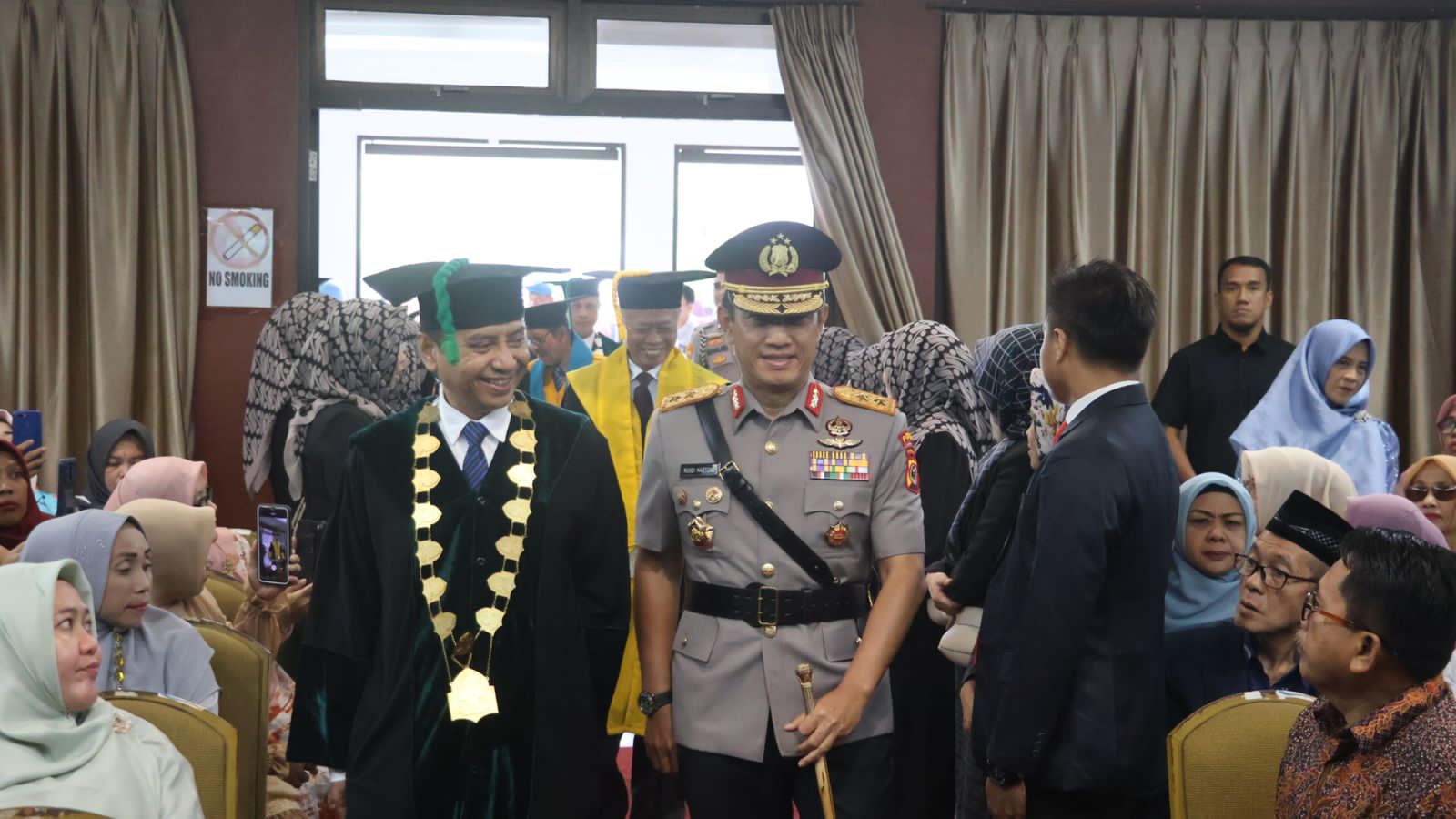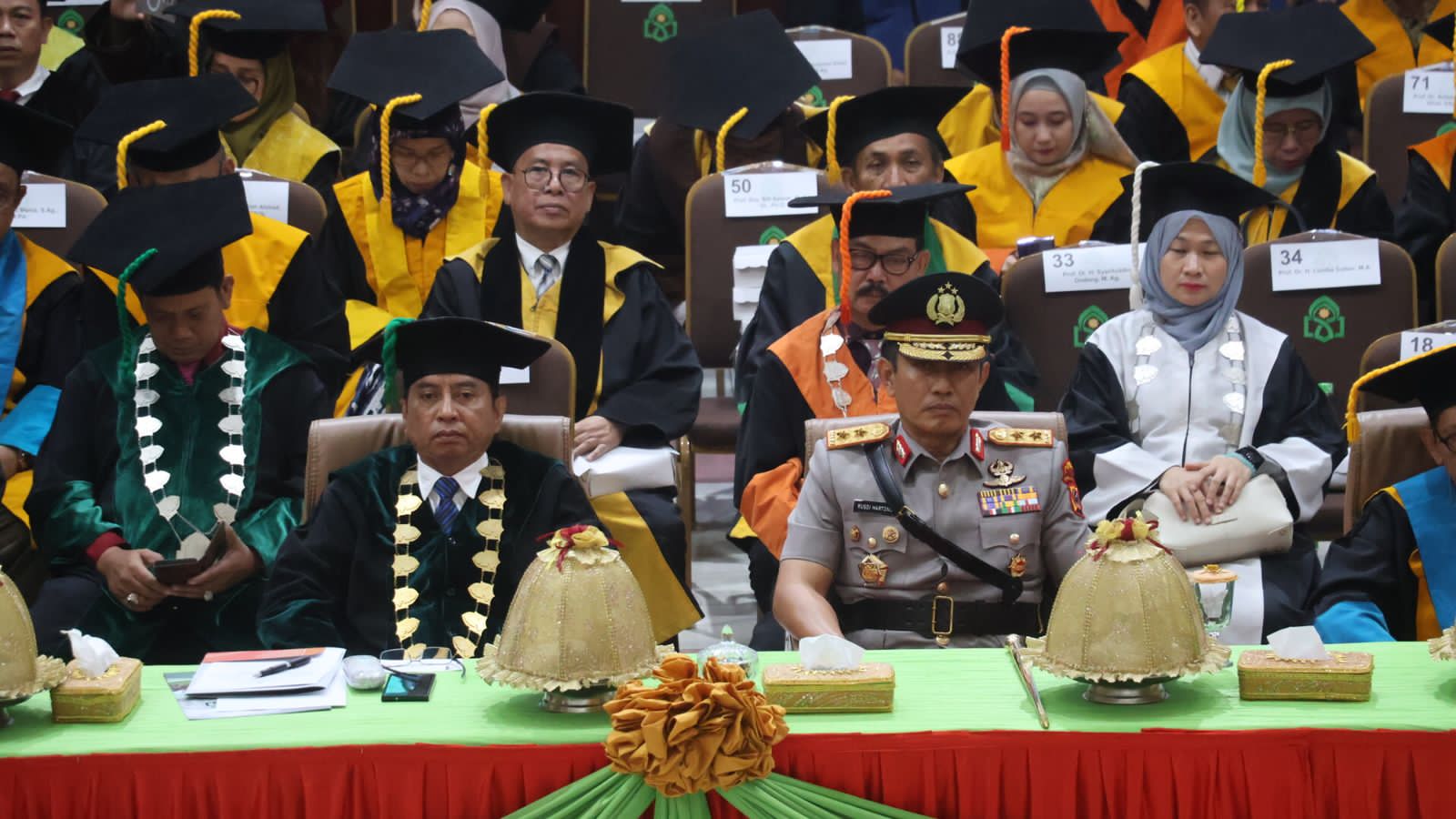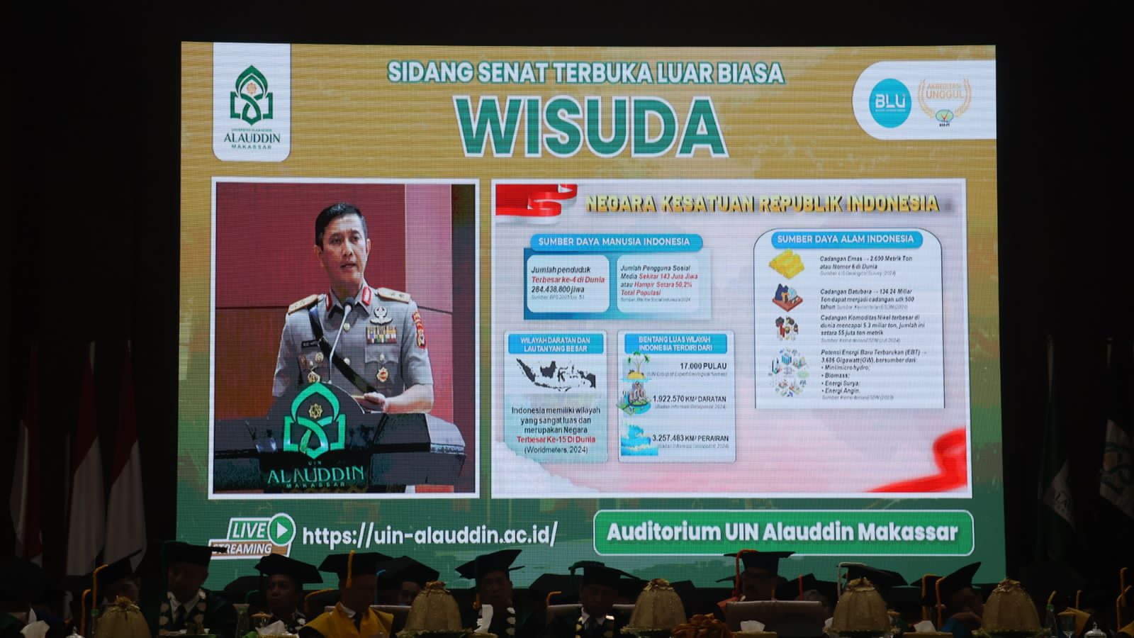 –Klivetvindonesia.com- Kapolda Sulawesi Selatan, Irjen Pol. Drs. Rusdi Hartono, M.Si., menghadiri kegiatan Wisuda Program Diploma, Sarjana, Profesi, Magister, dan Doktor Angkatan ke-110 Universitas Islam Negeri (UIN) Alauddin Makassar yang digelar di Gedung Auditorium UIN Alauddin, Selasa (15/04/2025).