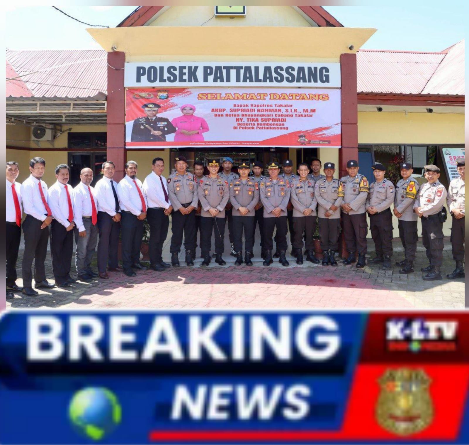 klivetvindonesia.com,Takalar, Kamis 17 April 2025 – Kapolres Takalar, AKBP Supriadi Rahman, S.I.K., M.M., bersama Ketua Bhayangkari Cabang Takalar, Ibu Tika Supriadi, serta rombongan pejabat utama Polres Takalar dan pengurus Bhayangkari, melaksanakan kunjungan kerja ke Polsek Pattallassang. Kedatangan mereka disambut hangat oleh Kapolsek Pattallassang, IPTU Ahmad Saleh, S.H., M.H., beserta jajaran personel.