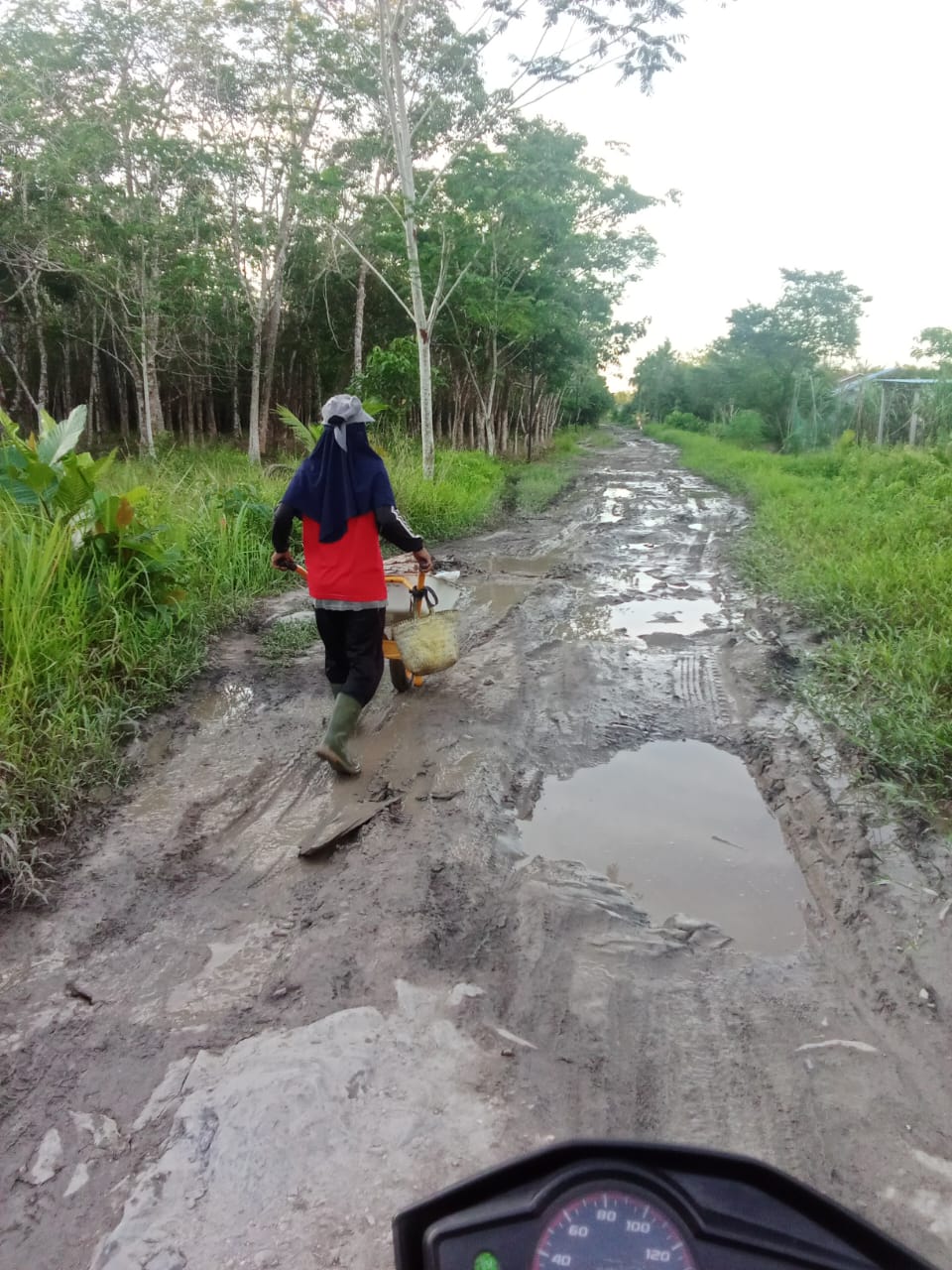 Kondisi Jalan tersebut Sangat Parah ketika musim penghujan datang, terlihat akses jalan yang biasa dilalui anak sekolah, petani dan masyarakat yang sedang mengais rezeki ke kota menjadi licin dan berlumpur seperti kubangan kerbau.