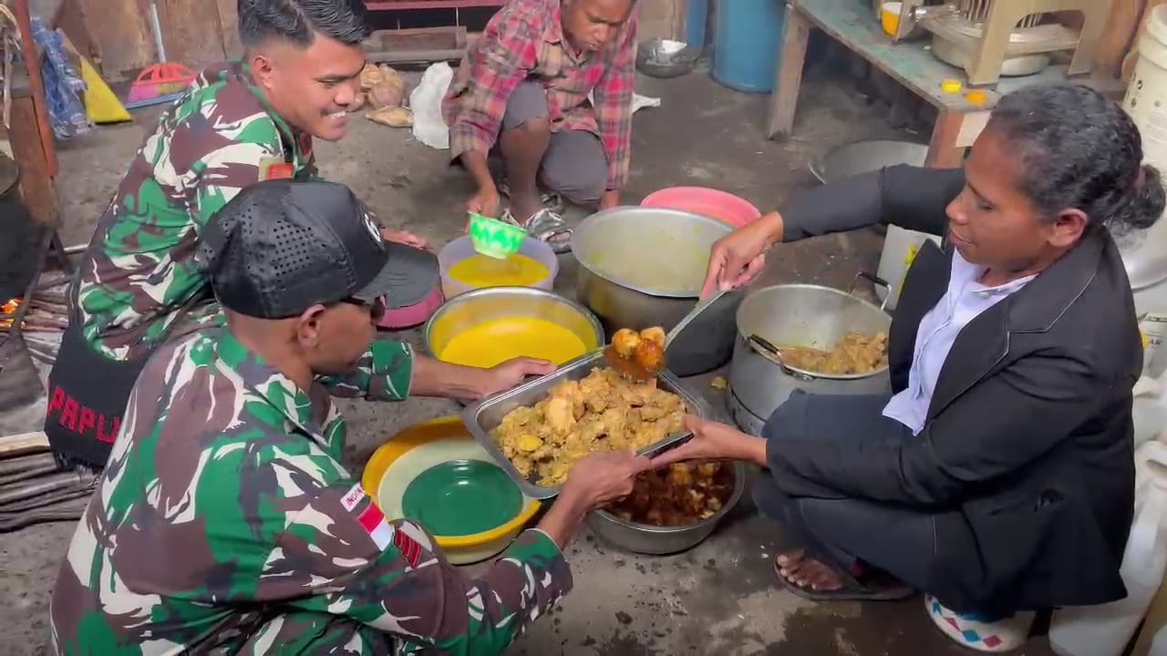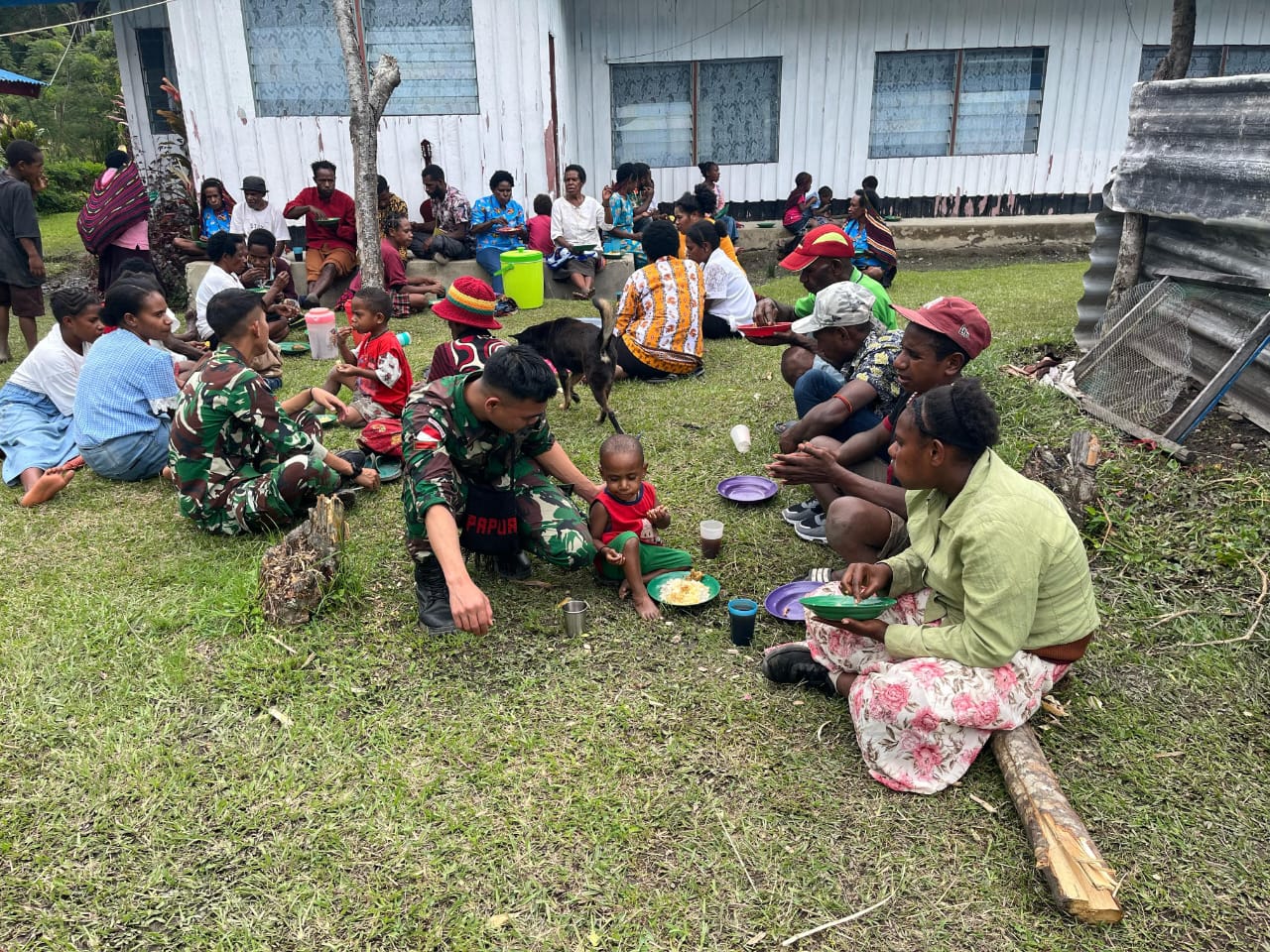 –klivetvindonesia.com– Yahukimo – Menjaga toleransi beragama melalui Pos Kurima Satgas Yonif 641/Bru merayakan ibadah Hari Raya Paskah dengan membantu menyediakan dan menyiapkan makanan untuk Jemaat Gereja Betel Polimo di Kampung Polimo Distrik Kurima, Kabupaten Yahukimo, Papua Pegunungan, (21/04/2025)
