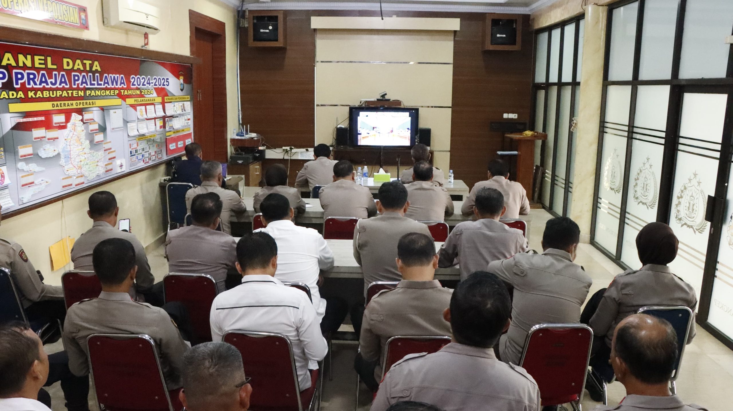 klivetvindonesia.com, Pangkep – Dalam rangka meningkatkan kinerja dan menjaga stabilitas keamanan di wilayah, Kapolres Pangkep AKBP Muhammad Husni Ramli, S.I.K., M.H., M.A., M.Tr.Opsla., bersama jajaran mengikuti kegiatan Video Conference (Vicon) Analisa dan Evaluasi (Anev) rutin yang dipimpin langsung oleh Kapolda Sulawesi Selatan Irjen Pol. Drs. Rusdi Hartono, M.Si., pada Senin, 21 April 2025 pukul 08.50 WITA bertempat di ruang Vicon Polres Pangkep.