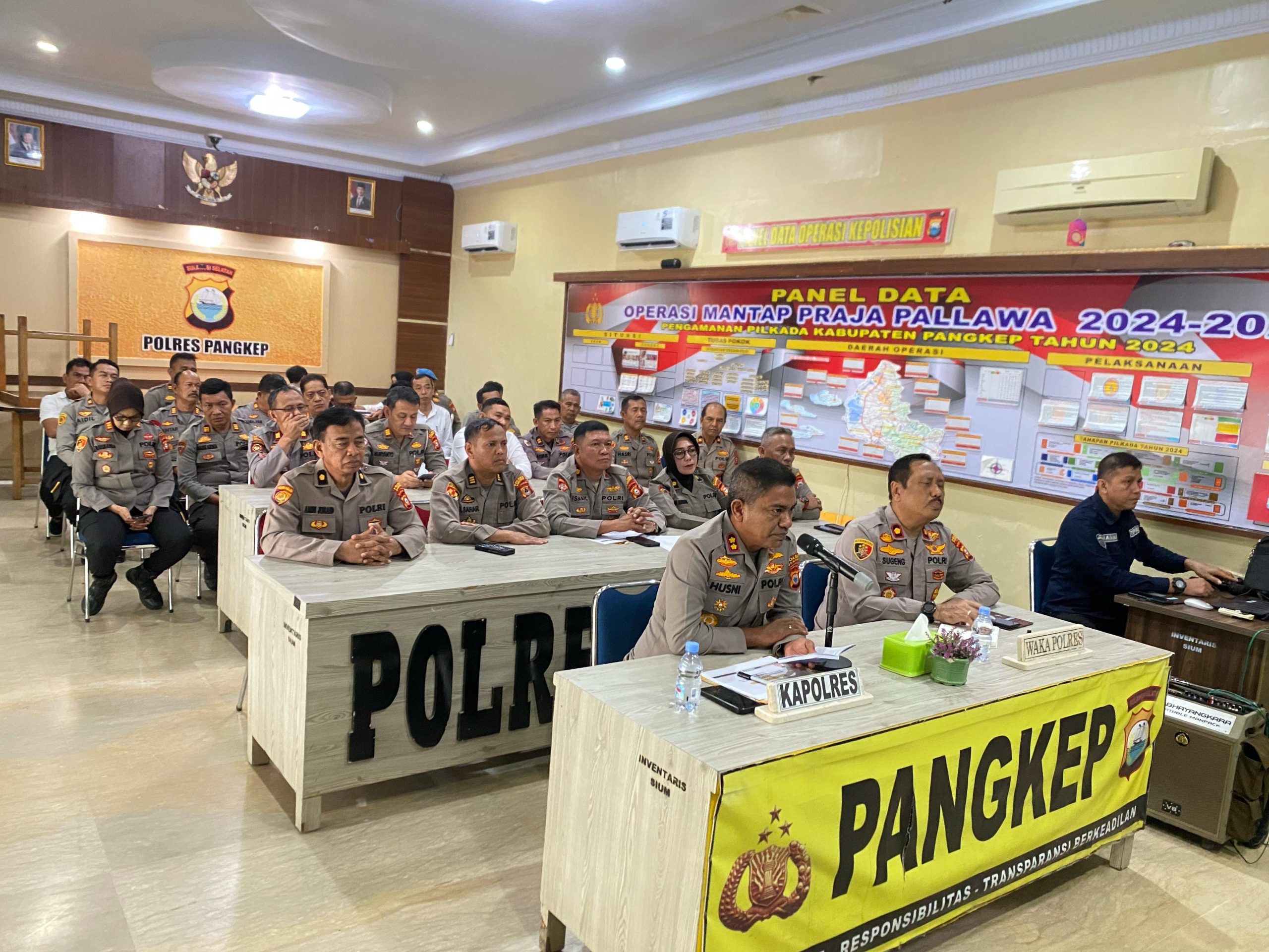 Dalam kesempatan tersebut, Kapolres Pangkep menyampaikan beberapa poin penting terkait situasi terkini di wilayah hukum Polres Pangkep, di antaranya melaporkan penanganan terhadap isu-isu viral yang tengah menjadi perhatian publik, memaparkan hasil pencapaian penanganan kasus oleh Satuan Reserse Kriminal (Sat Reskrim) dan menyampaikan bahwa secara umum situasi kamtibmas di wilayah hukum Polres Pangkep dalam keadaan aman dan terkendali.