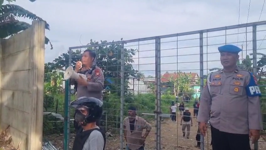 Melalui pengeras suara, Kapolsek dan anggota lainnya berdiri ditengah dua kelompok warga yang konflik tersebut mengimbau kedua kelompok warga untuk segera menghentikan aksi mereka demi mencegah jatuhnya korban lebih lanjut.